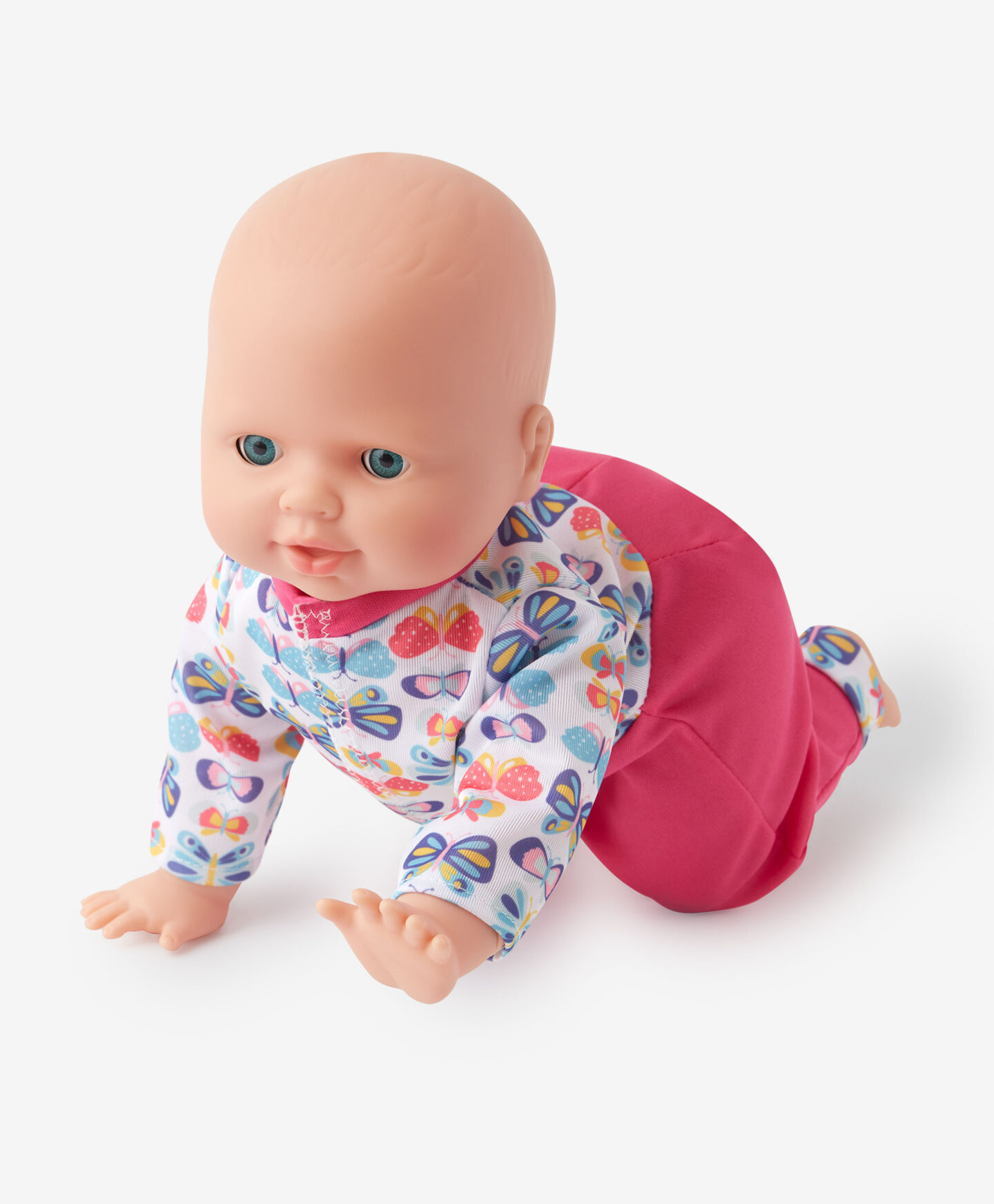 Die krabbelnde Babypuppe regt zu aktiven Bewegungsspielen an.
