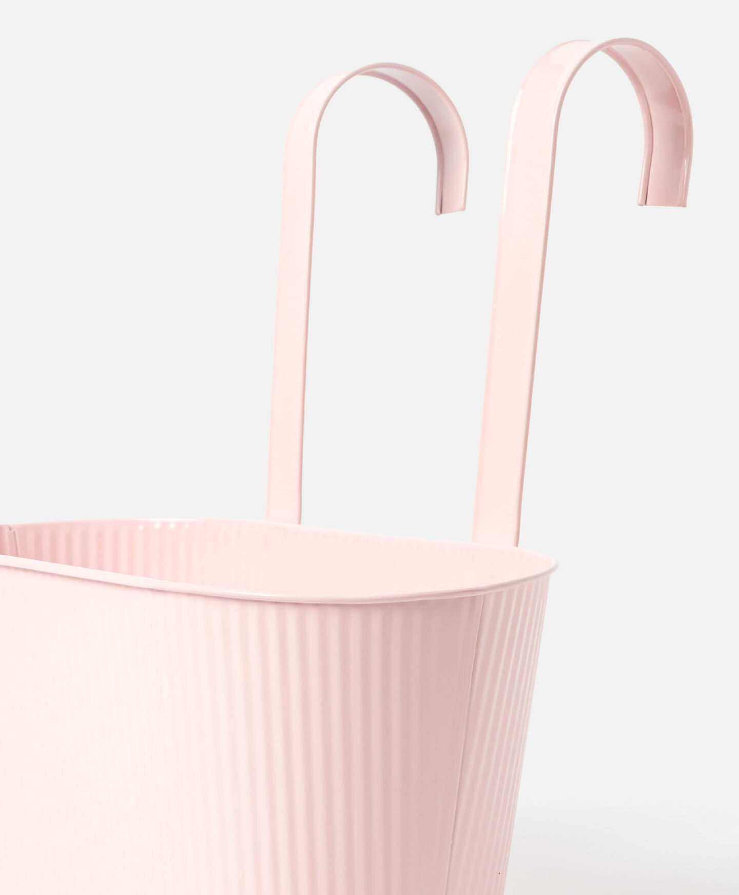 Die längliche pinke hängende Pflanzkübel-Abdeckung mit gerippter Oberfläche fällt durch ihr frühlingshaftes Design auf.