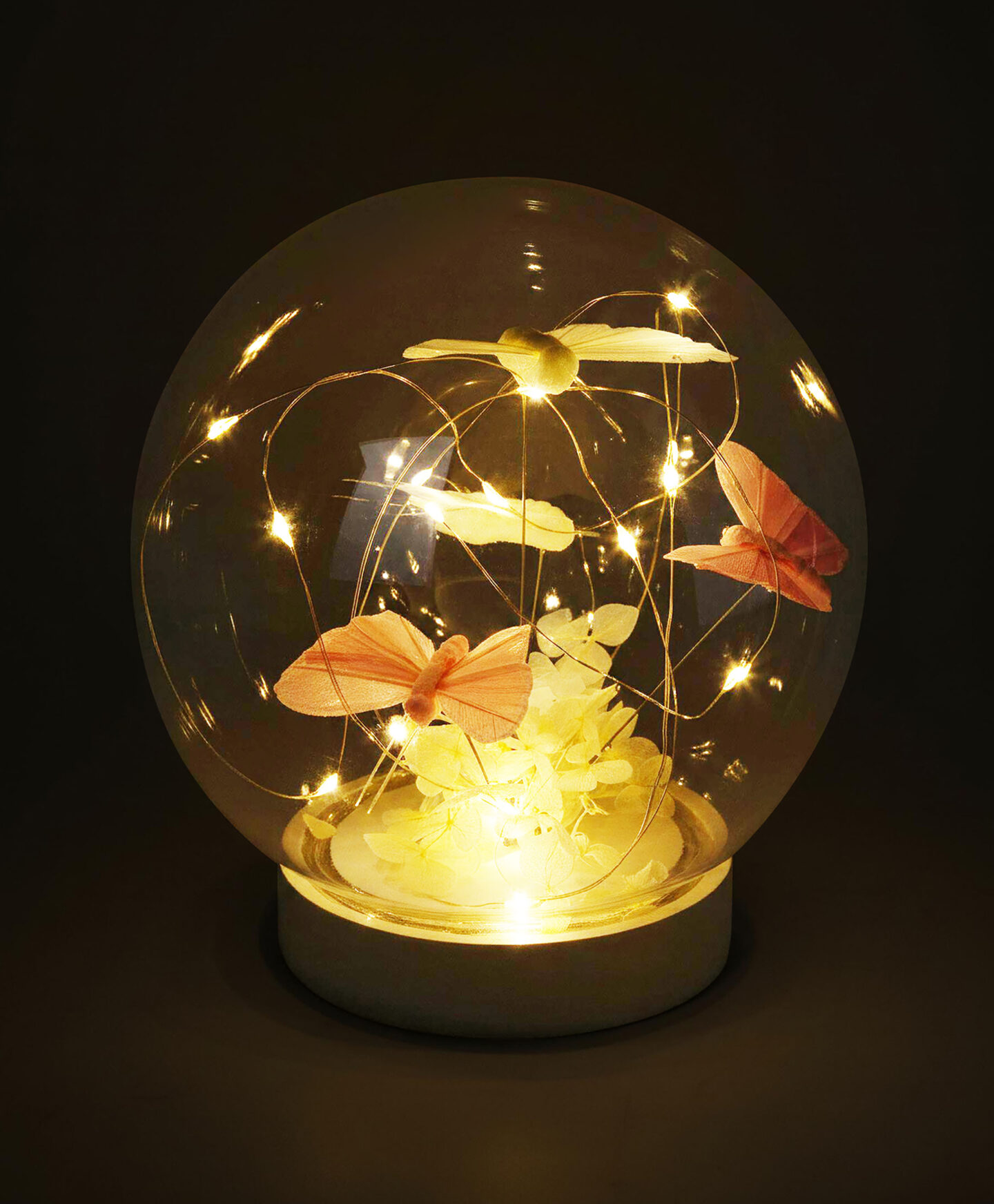 Der LED-Globus mit Schmetterlingsmotiv ist ein stimmungsvolles Dekoelement für Wohnräume.