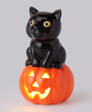 Die LED-Katze auf Kürbis ist eine charmante Dekoration für die Gruselsaison.