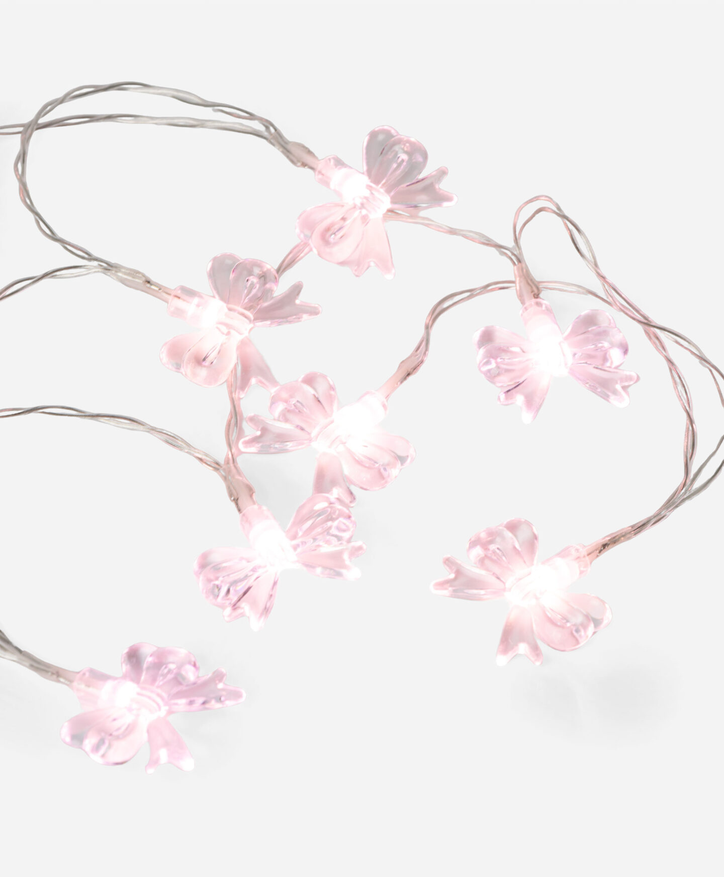 Die LED-Lichterkette mit Schleifen sorgt für eine gemütliche und dekorative Beleuchtung im Innenraum.