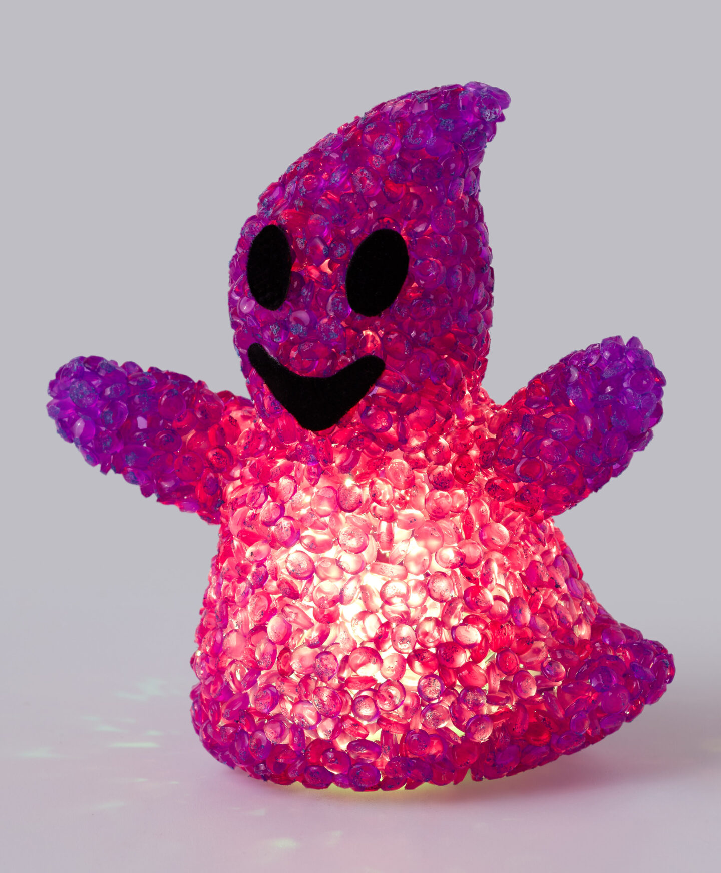 Der LED-Geist „Mini“ in Lila mit Kristallen ist eine elegante Dekoration.