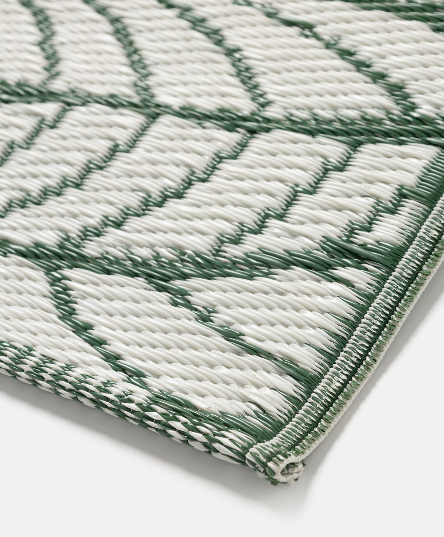 Der Outdoor-Teppich mit Blattmuster ist eine dekorative Ergänzung für Balkon oder Terrasse.