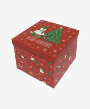 Die Papierbox ist mit einem dekorativen Print in festlicher Atmosphäre verziert.