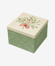 Die Papierbox ist mit einem dekorativen Print in festlicher Atmosphäre verziert.