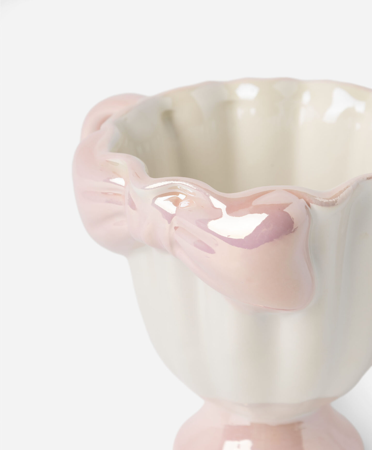 Die Perlmutt-Tasse mit Schleife ist eine stilvolle Ergänzung für das Geschirr.