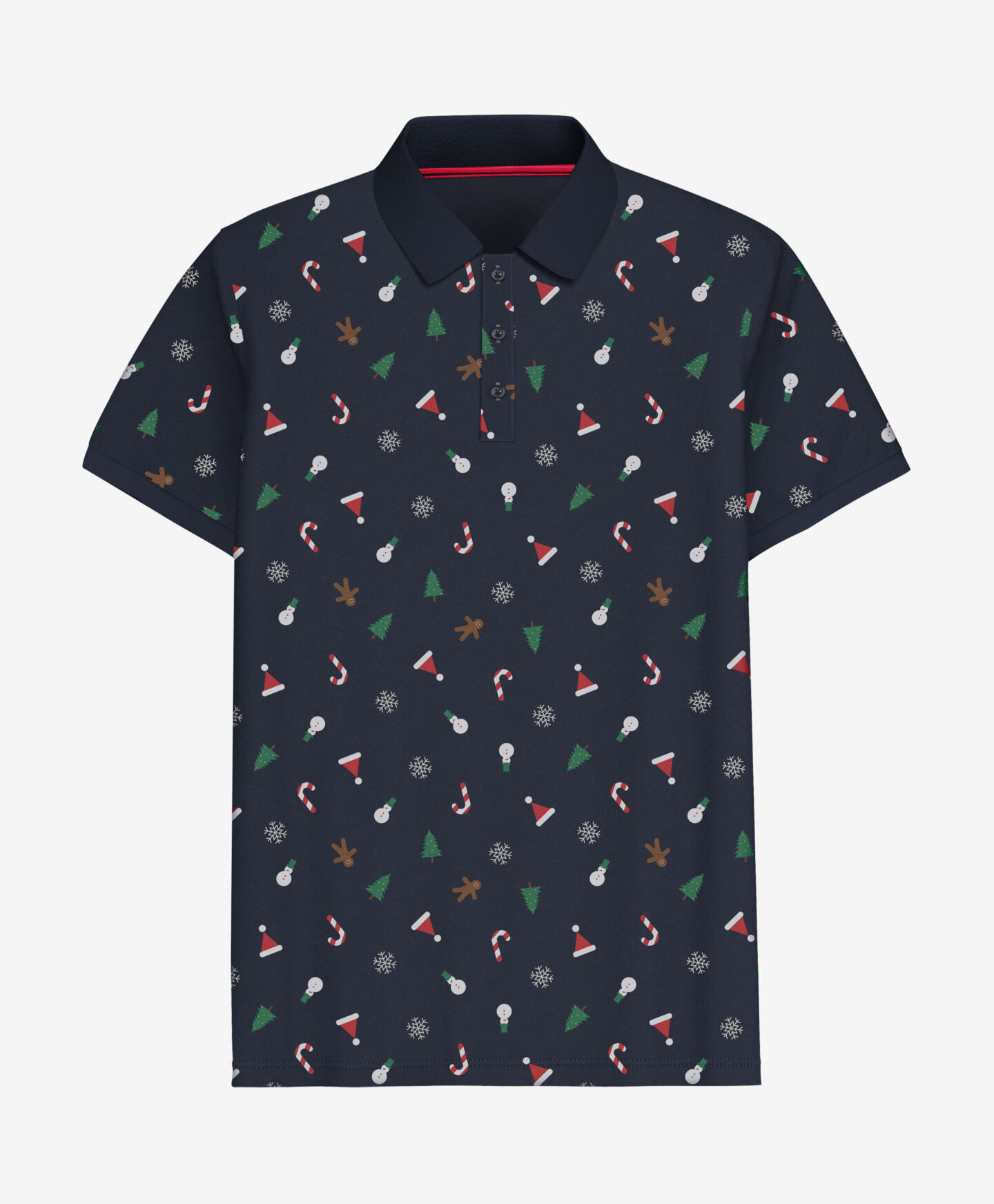 Das Polo-T-Shirt aus 100% Baumwolle mit Weihnachtsmotiv ist eine elegante Wahl für Wintertage.