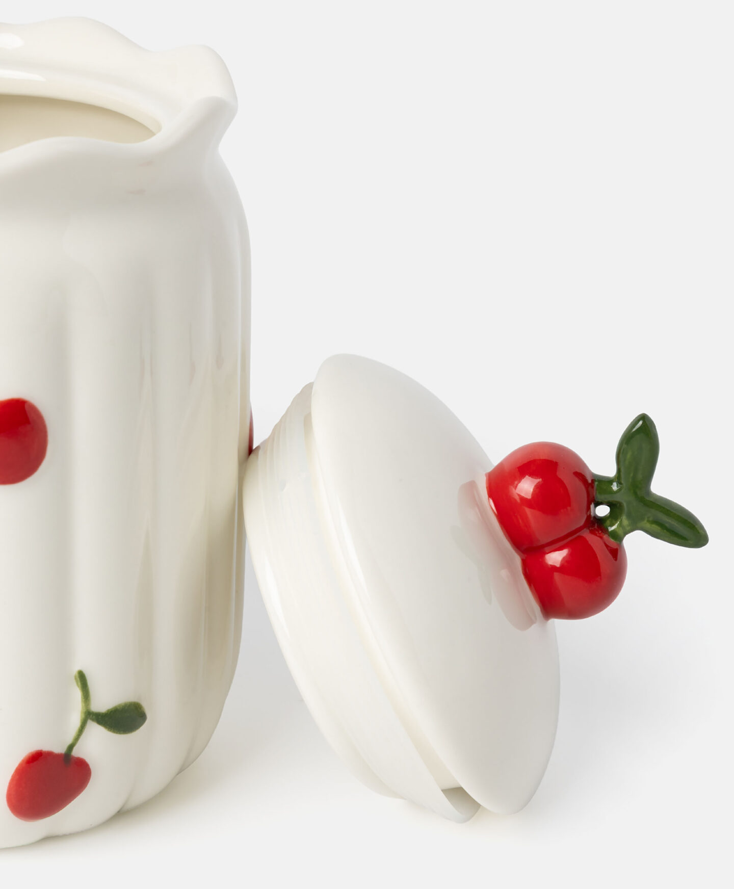 Der Porzellanbehälter mit Kirschmuster ist eine charmante Ergänzung für jede Küche.