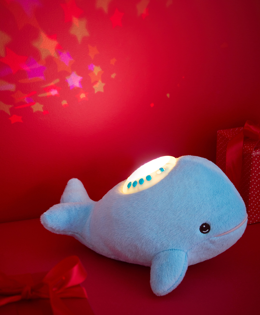 Der Projektor Wal vereint die Funktionen eines Plüschtiers und eines sanften Nachtlichts.