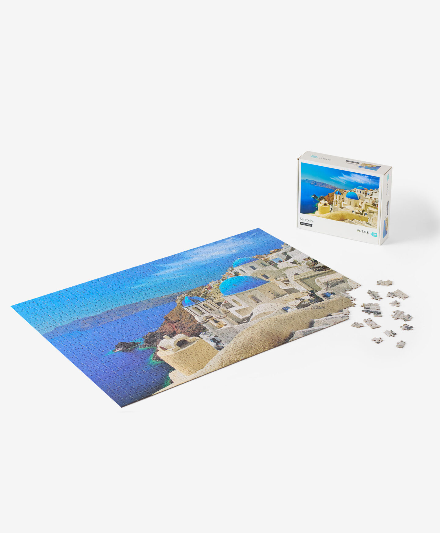 Das Puzzle Santorini mit 1000 Teilen zeigt die malerische Welt der griechischen Insel in detailreicher Darstellung.