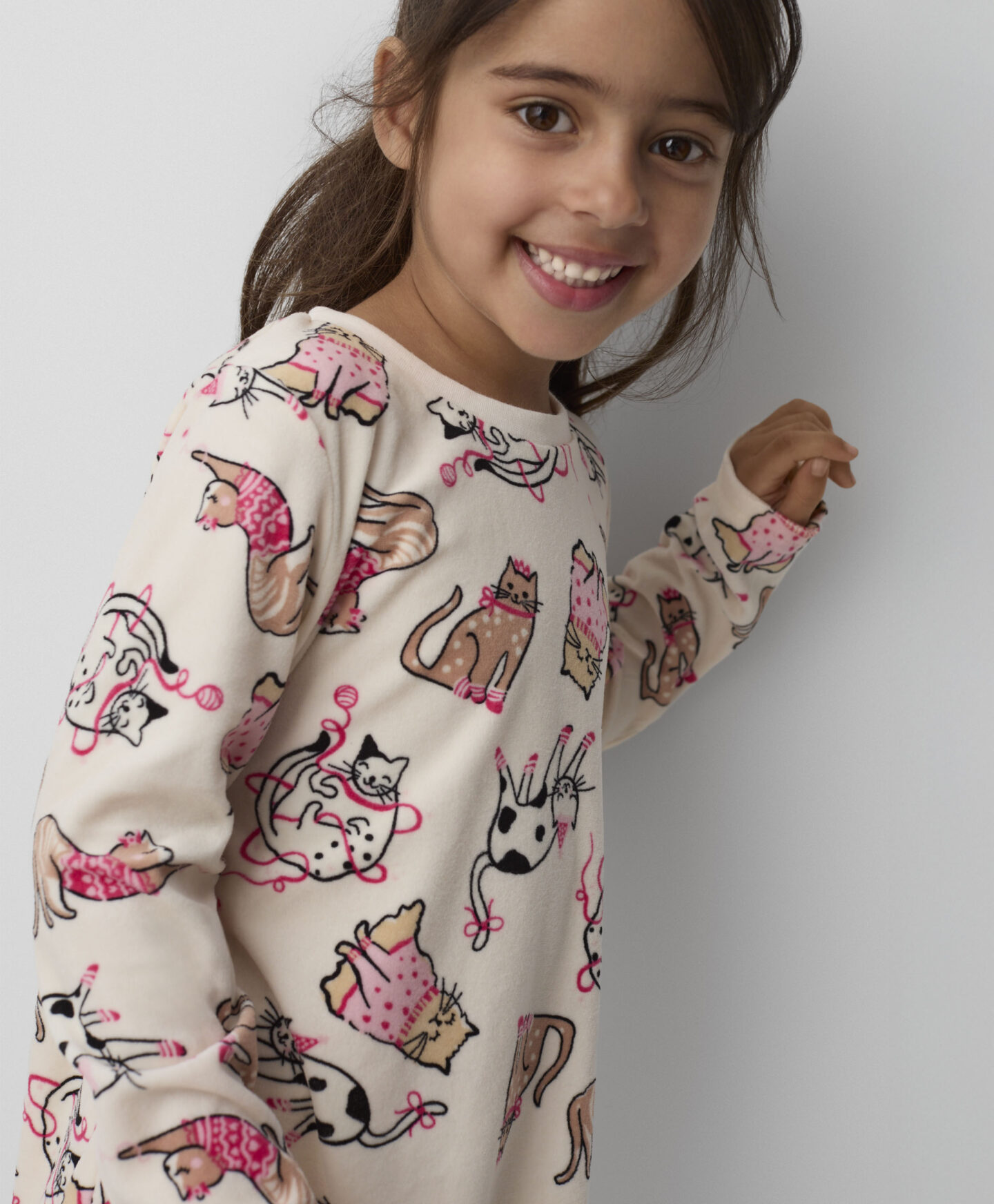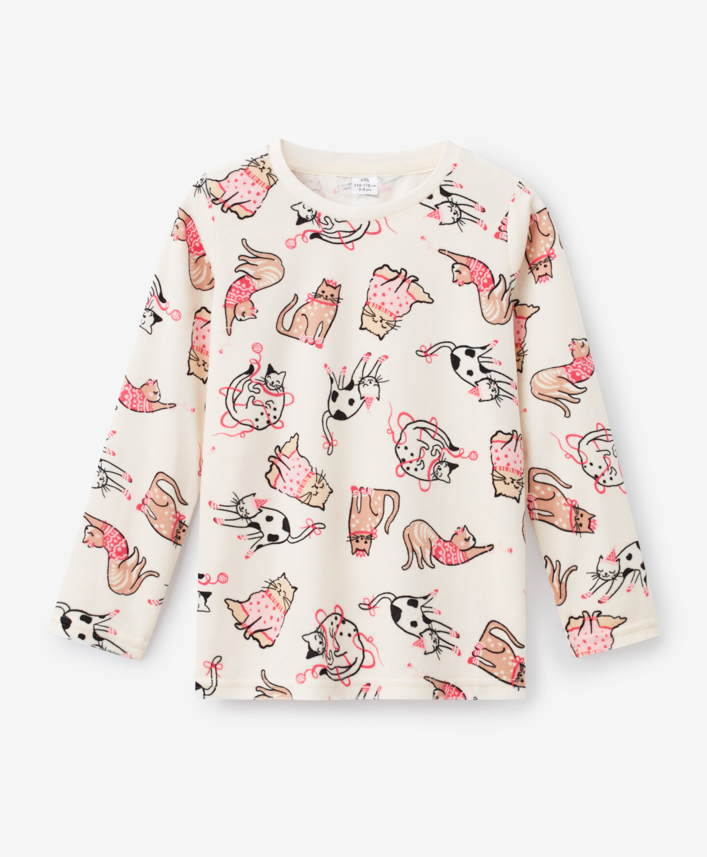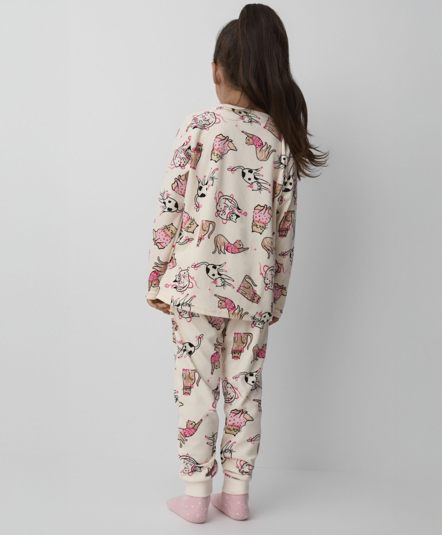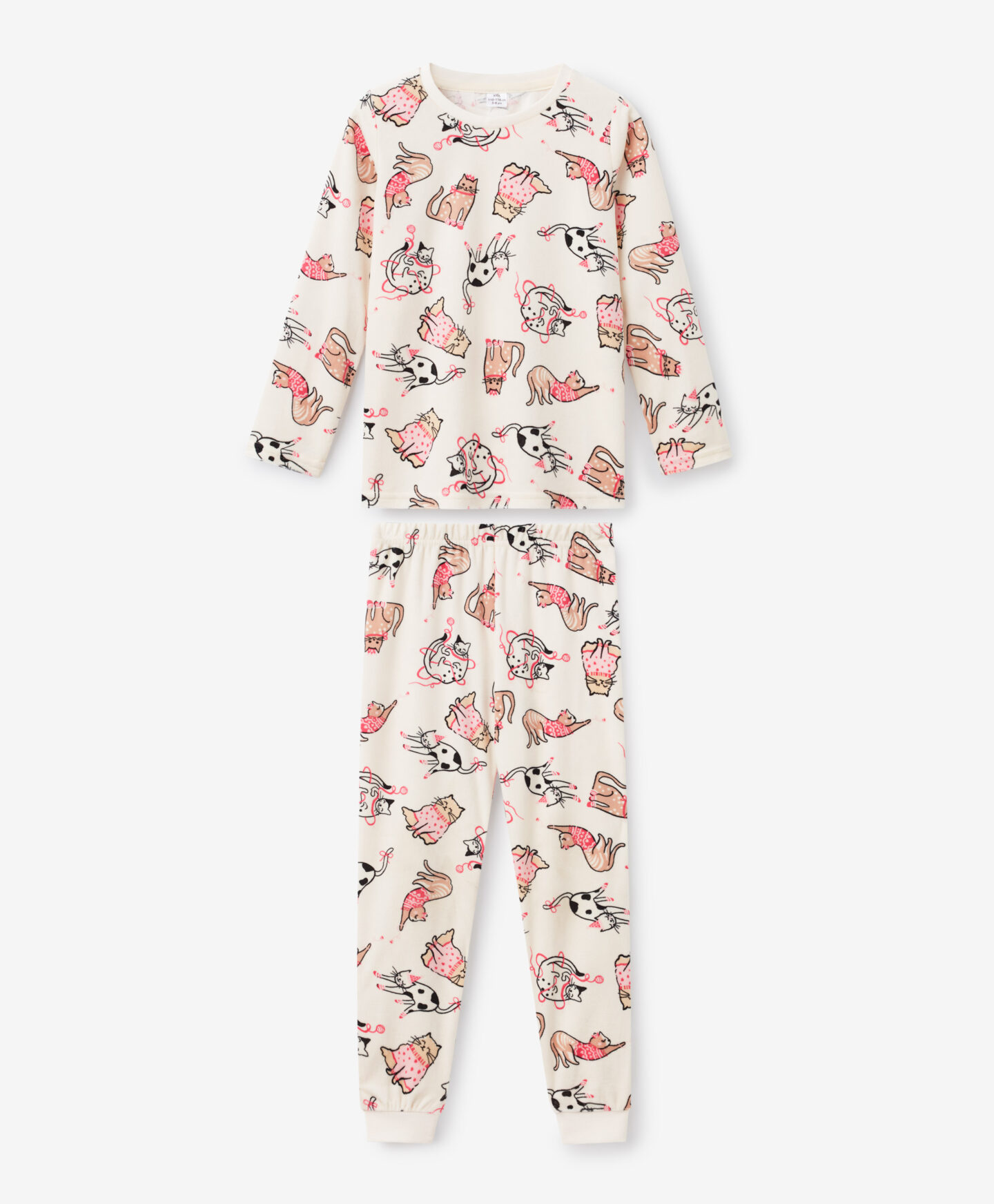 Der Pyjama für Mädchen aus Samt mit Kätzchen ist die perfekte Wahl für kleine Fans dieser Tiere.