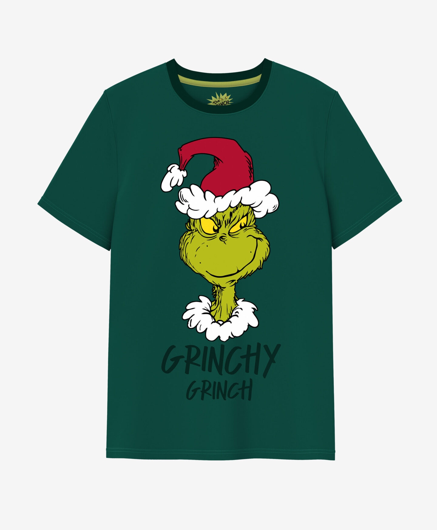 Der Pyjama mit Lizenzmotiv von Grinch, 100% Baumwolle, besteht aus T-Shirt und Hose im Weihnachtsmuster.