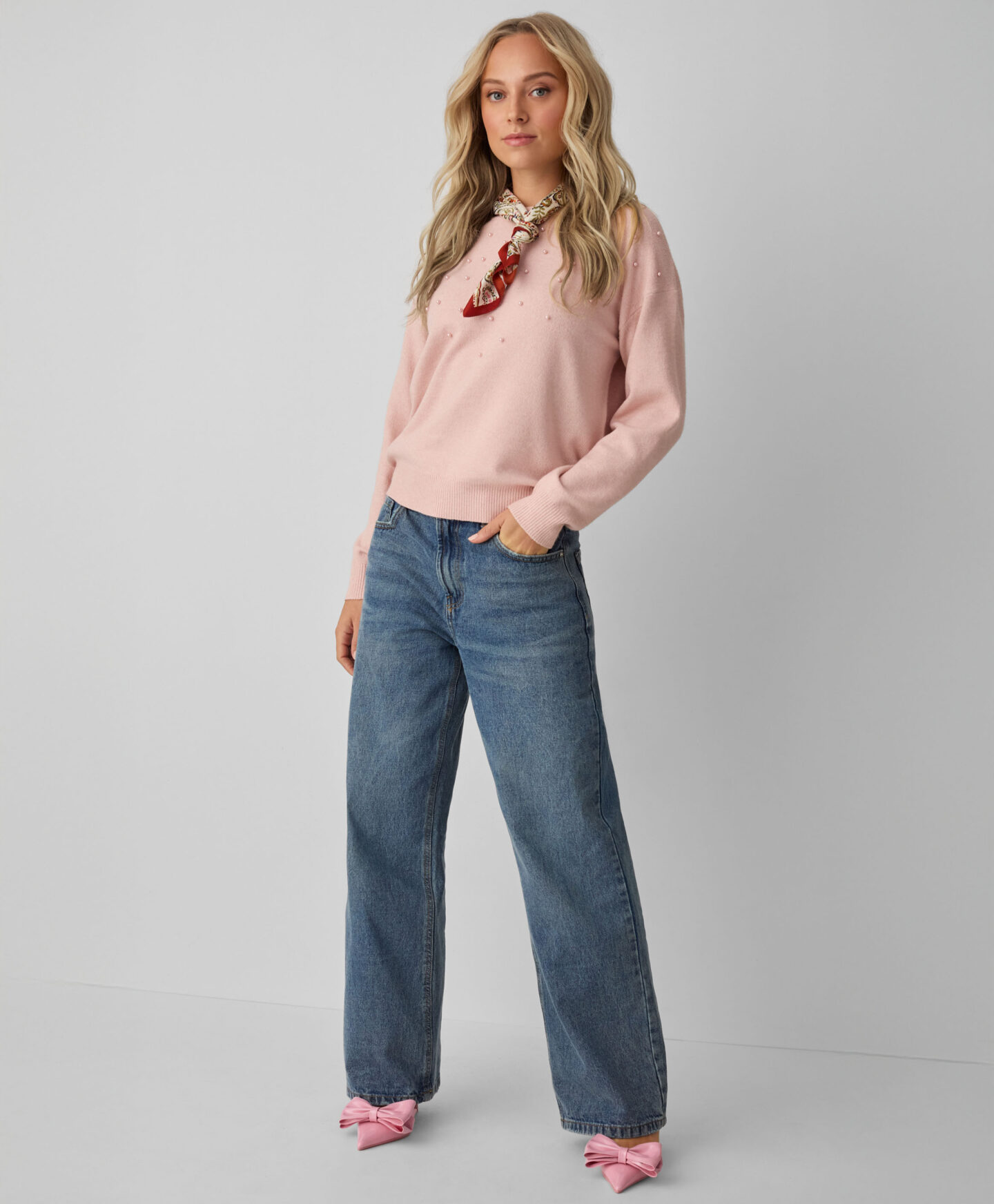 Rosa Pearl Sweatshirt für Damen mit Perlen – Eine elegante Alltagsoption. Es ist warm, weich im Griff und mit kleinen Perlen auf der Vorderseite verziert. Lässt sich perfekt mit Rock, Kleid oder Hose kombinieren und passt sowohl zu Büro- als auch zu festlicheren Outfits. Erhältlich in zwei Farbvariants.
