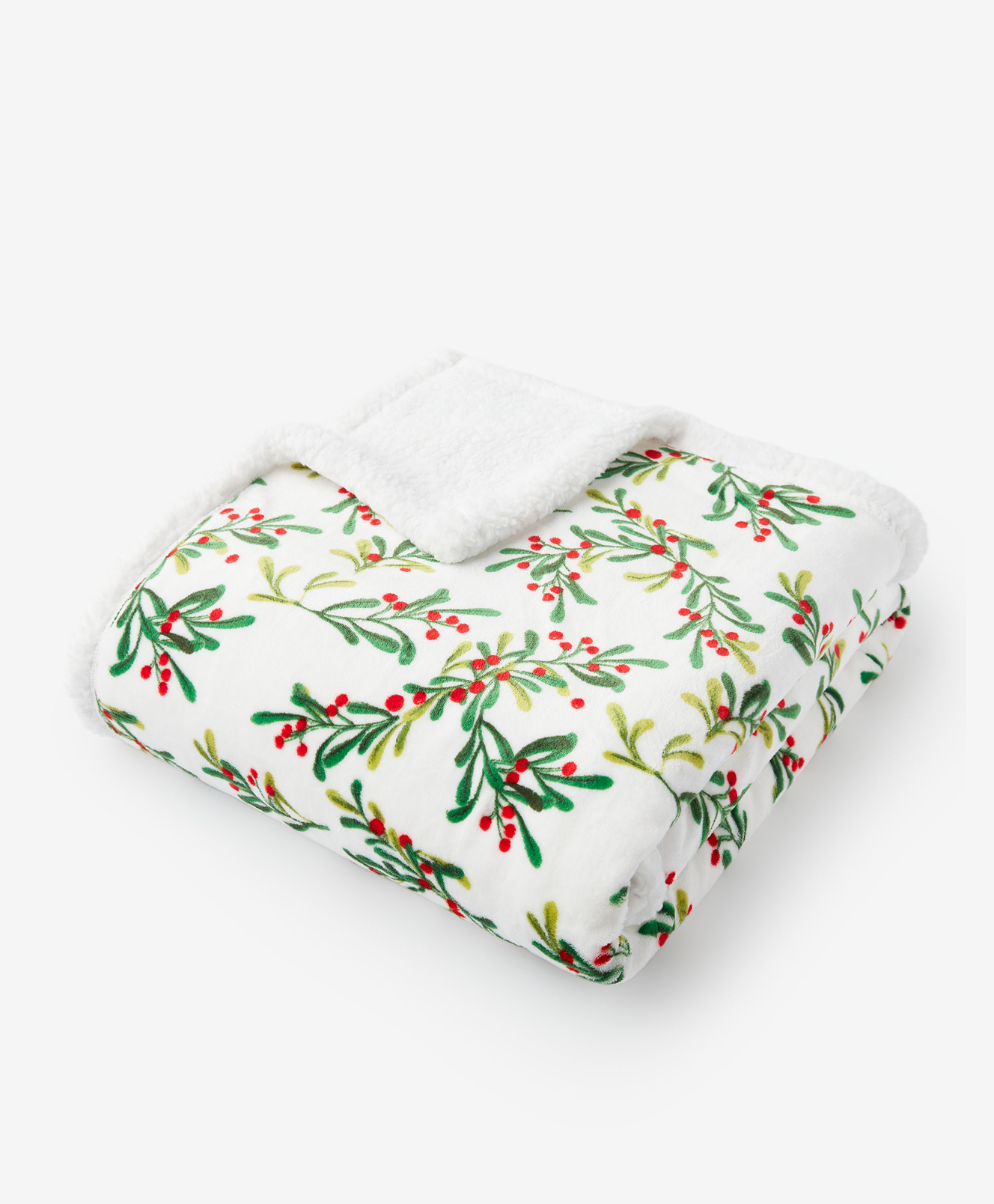 Die Sherpa-Decke weiß-grün sorgt mit ihrem weichen Material für Gemütlichkeit und weihnachtliche Atmosphäre.