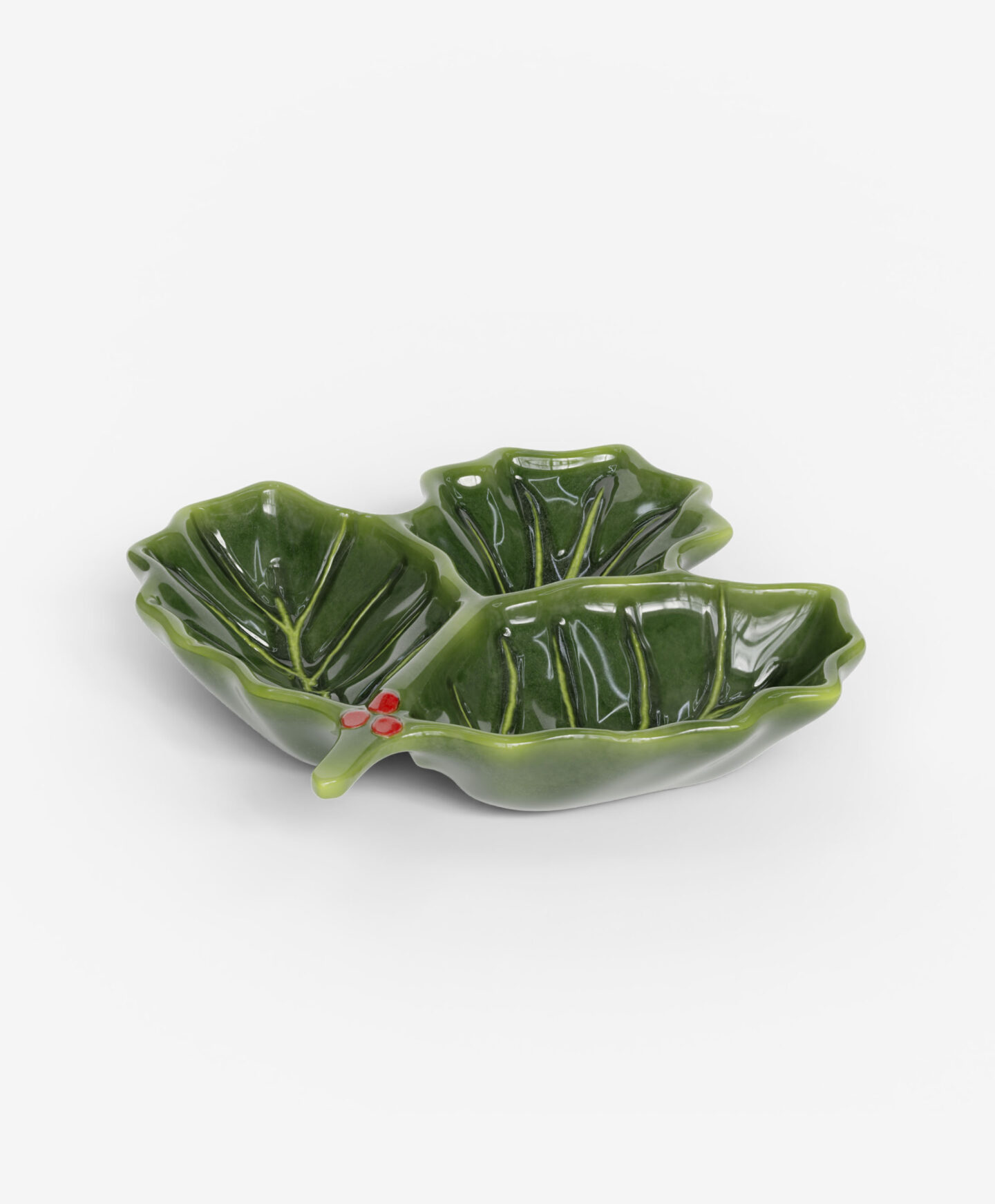 Die Snackschale in Stechpalmenform ist ein außergewöhnliches Accessoire, das Nüsse, Süßigkeiten oder kleine Snacks dekorativ präsentiert.