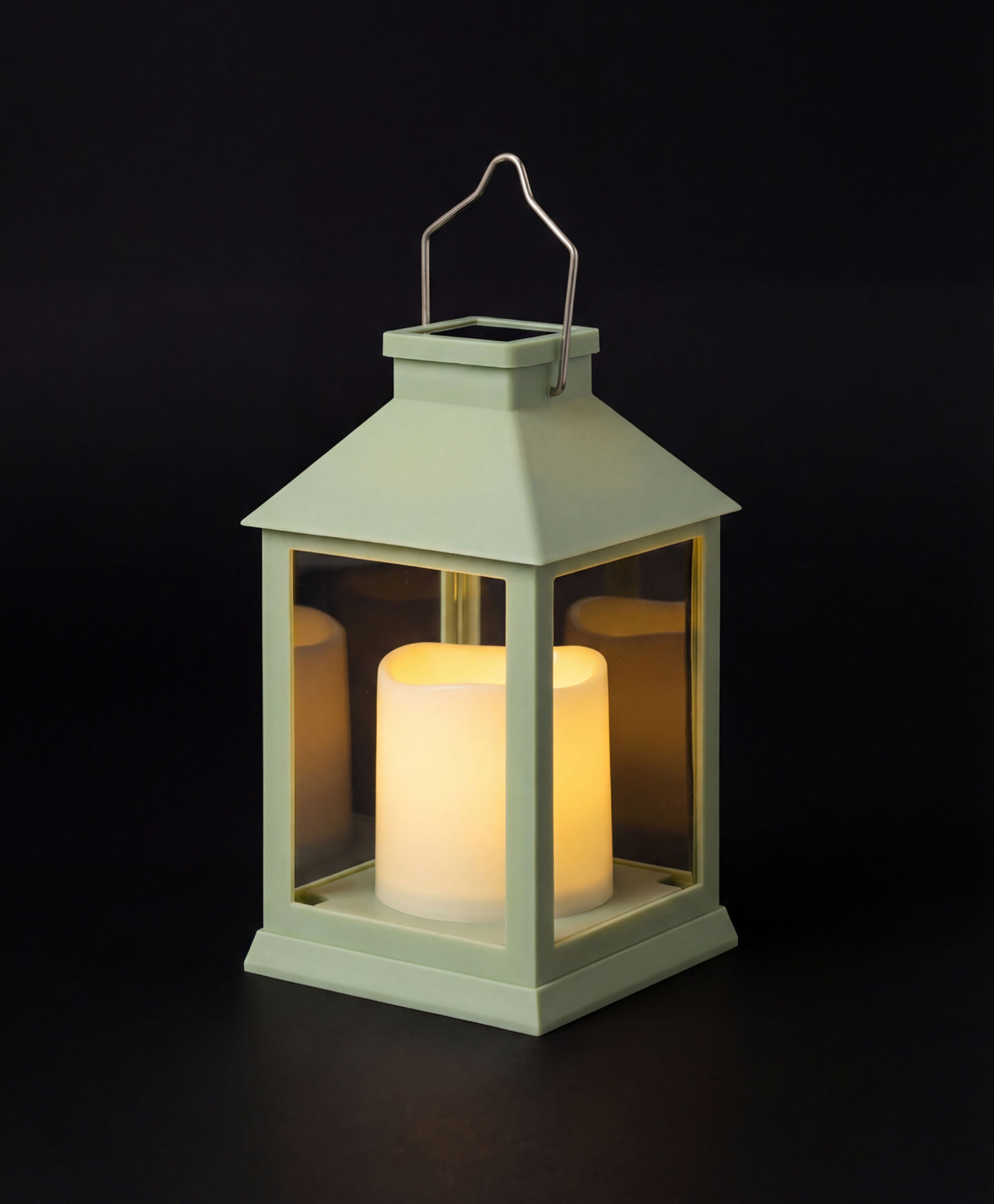 Die grüne Solar-Laterne verbindet klassischen Stil mit moderner LED-Technologie.