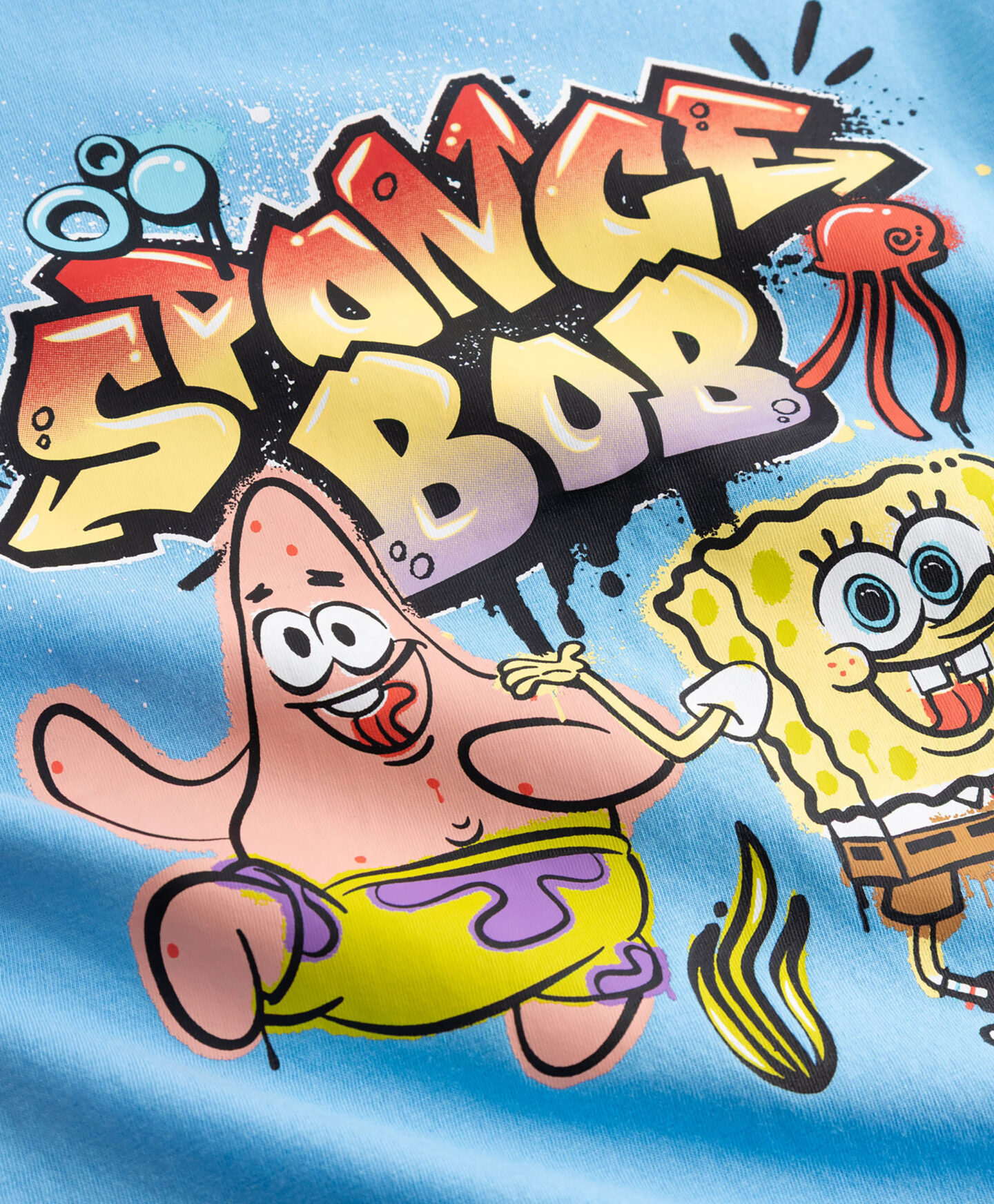Das SpongeBob T-Shirt aus 100% Baumwolle mit kurzen Ärmeln zeigt beliebte Figuren.