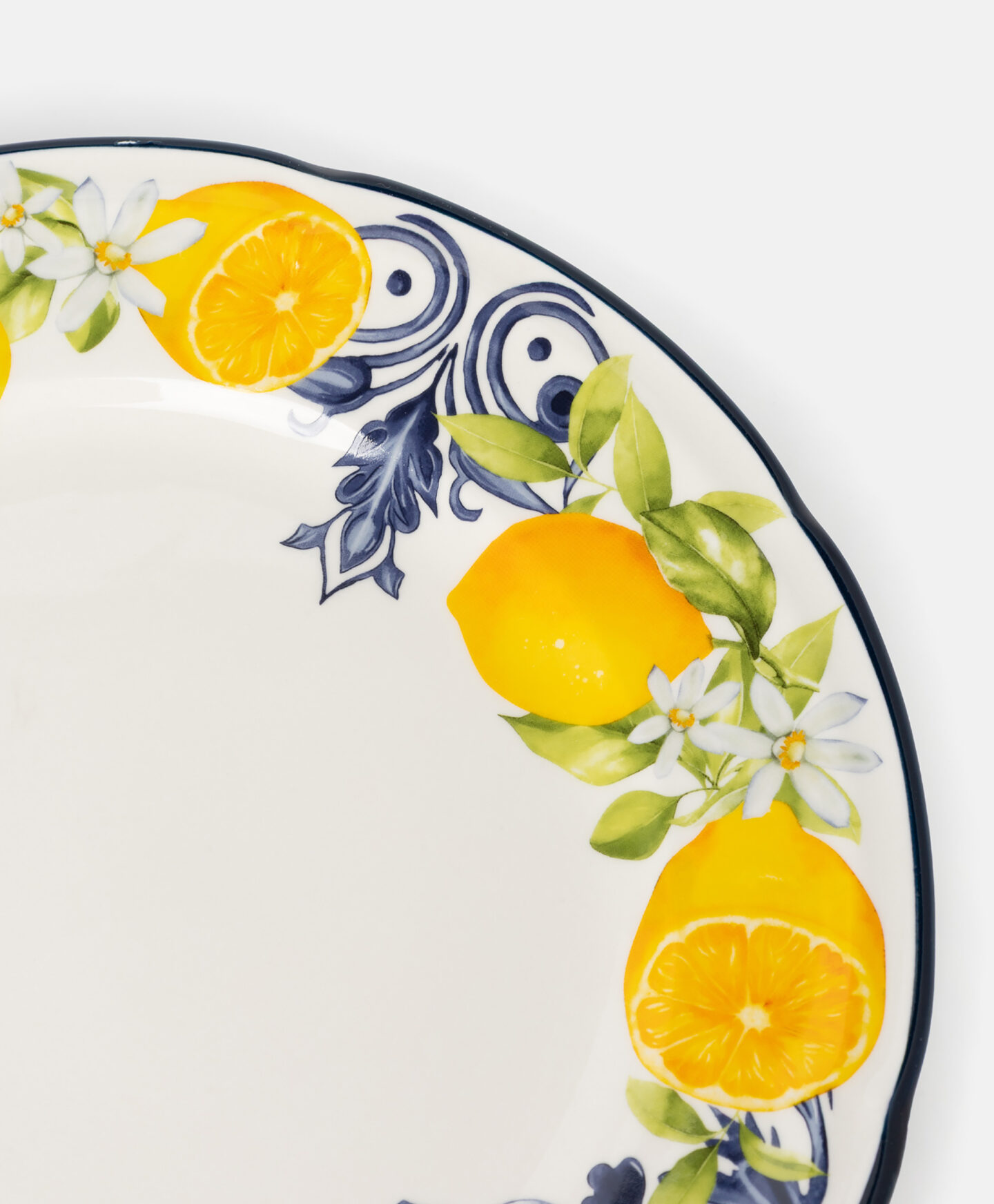 Der Steingut-Dessertteller mit Zitronenmuster ist eine elegante Ergänzung für dein Geschirr.