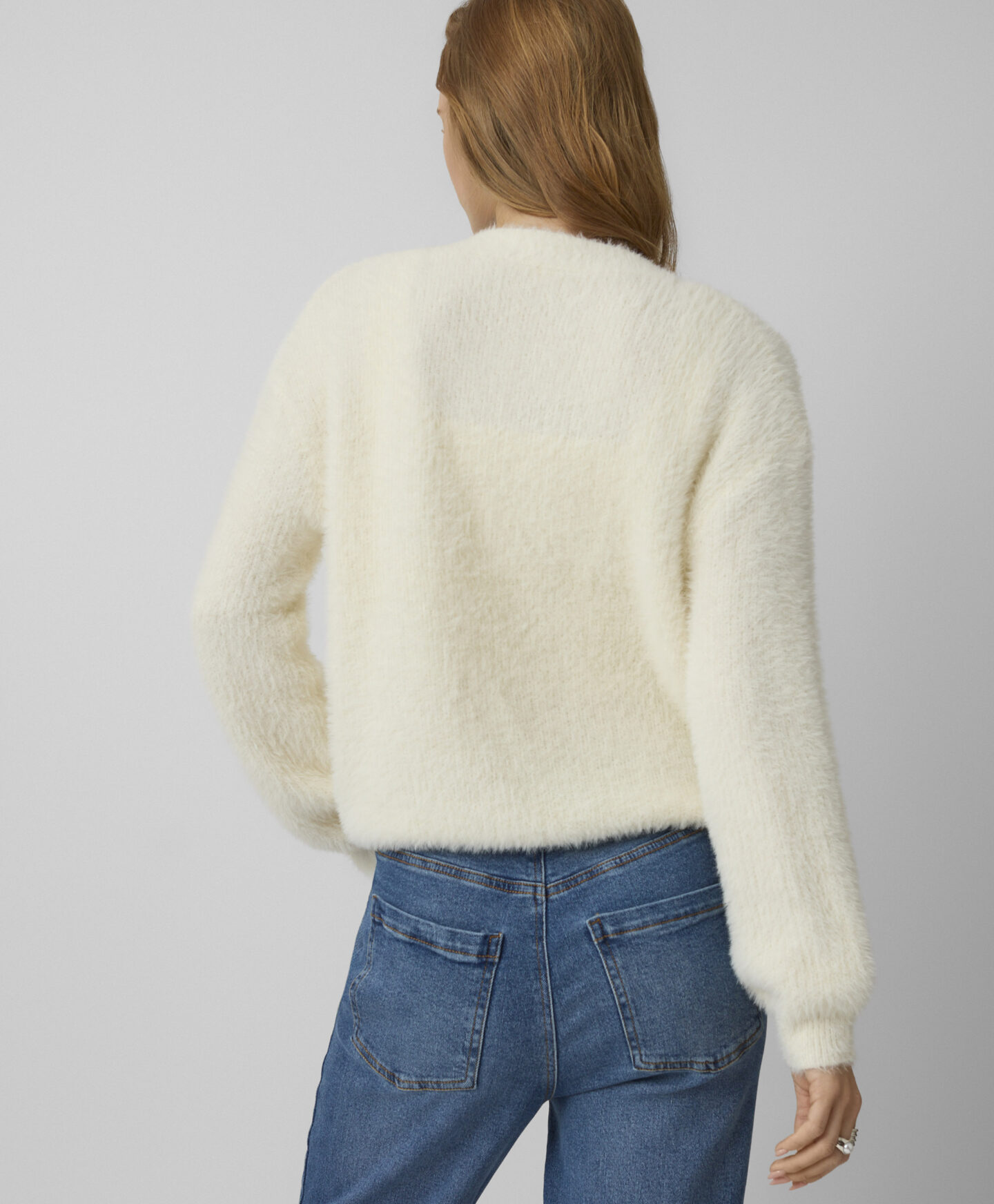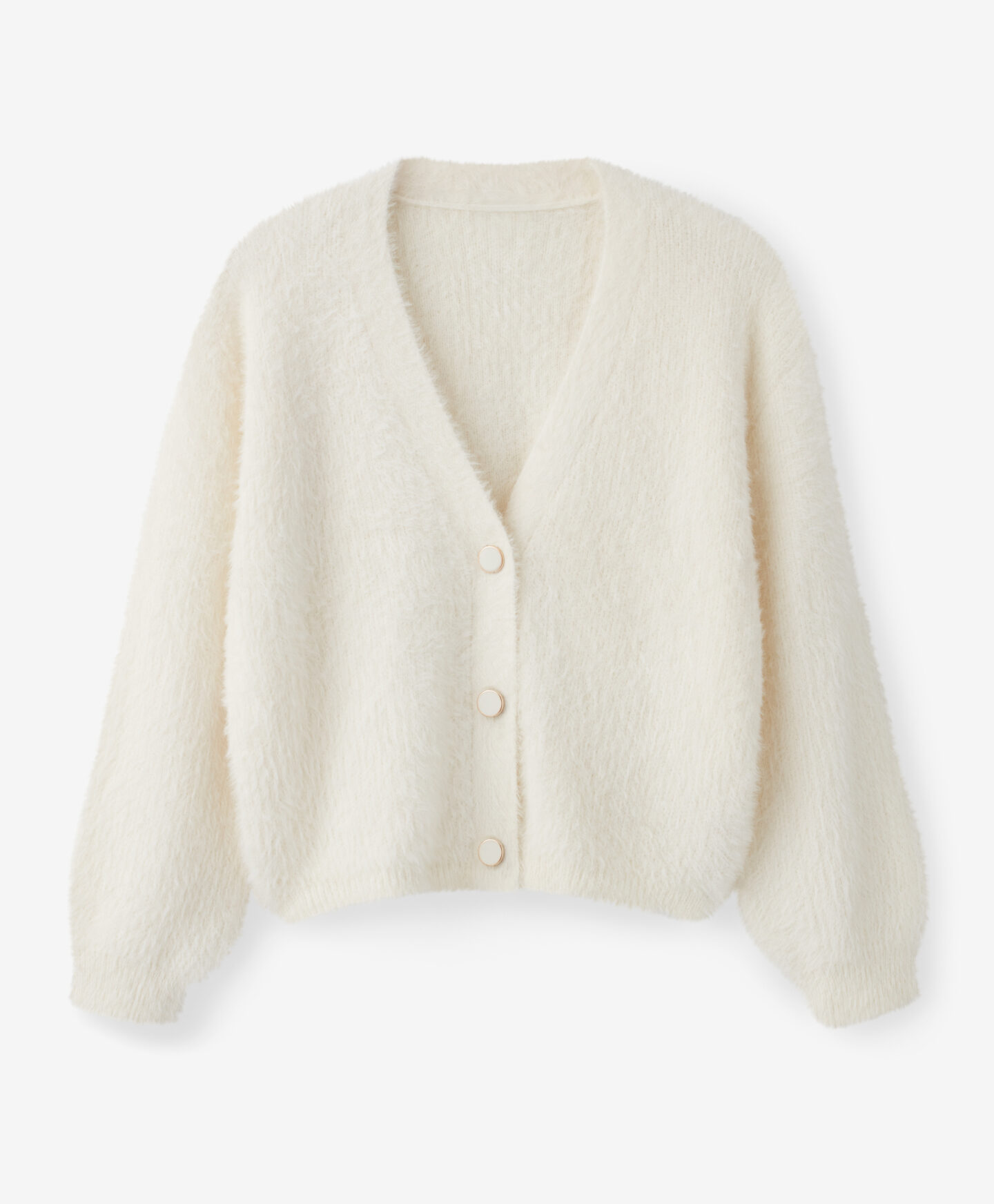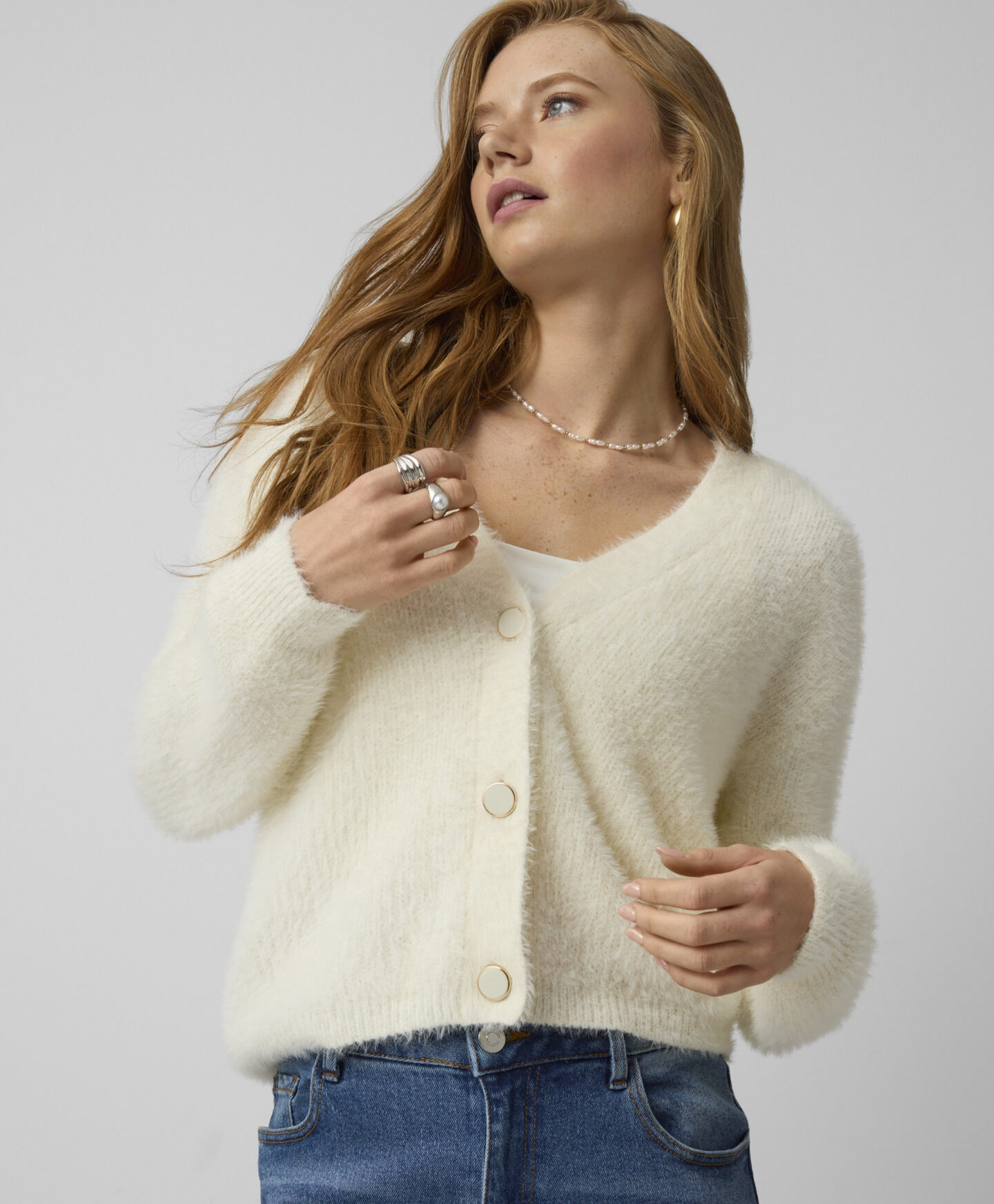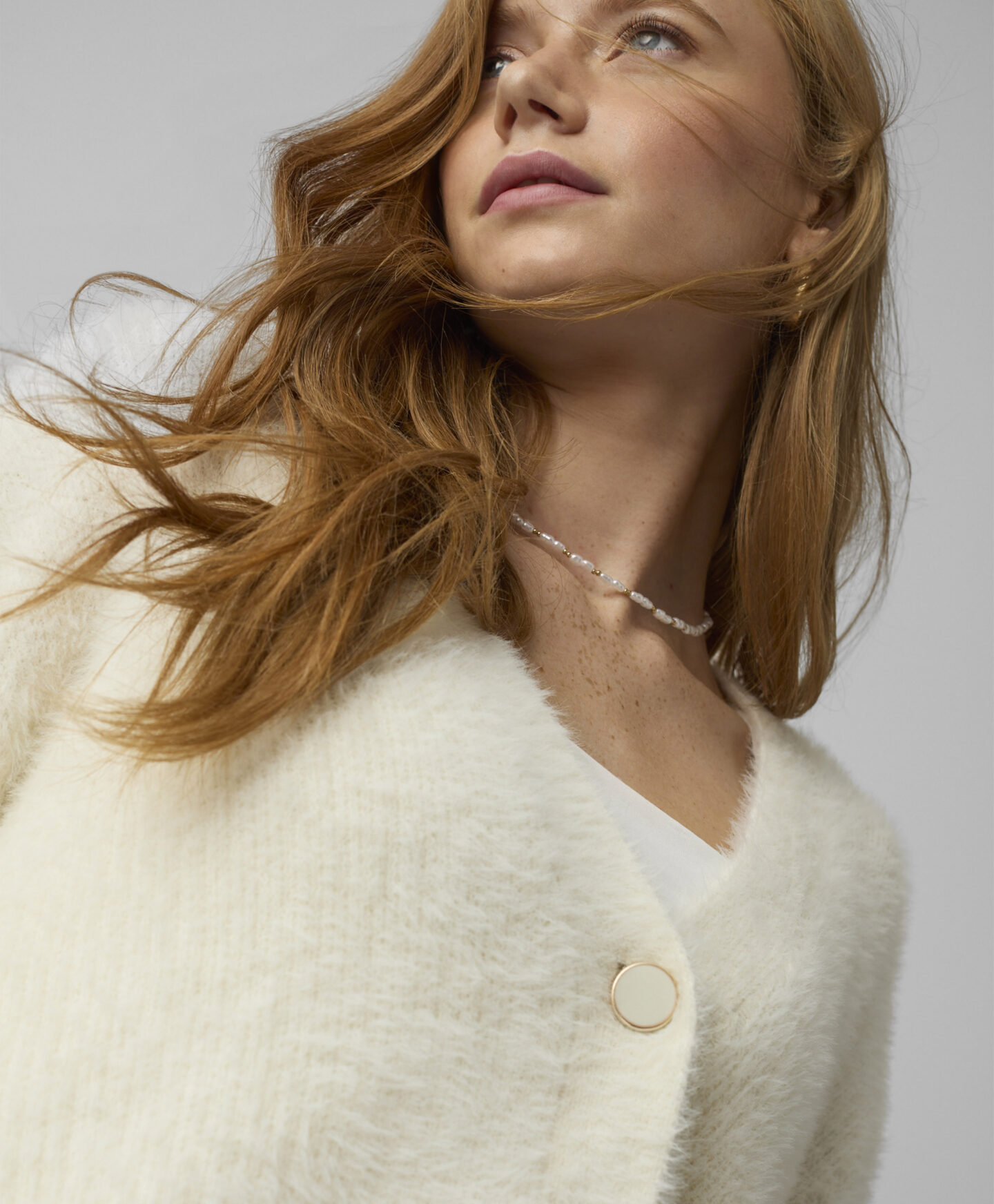 Die Strickjacke ist eine ideale Wahl für kühlere Tage.