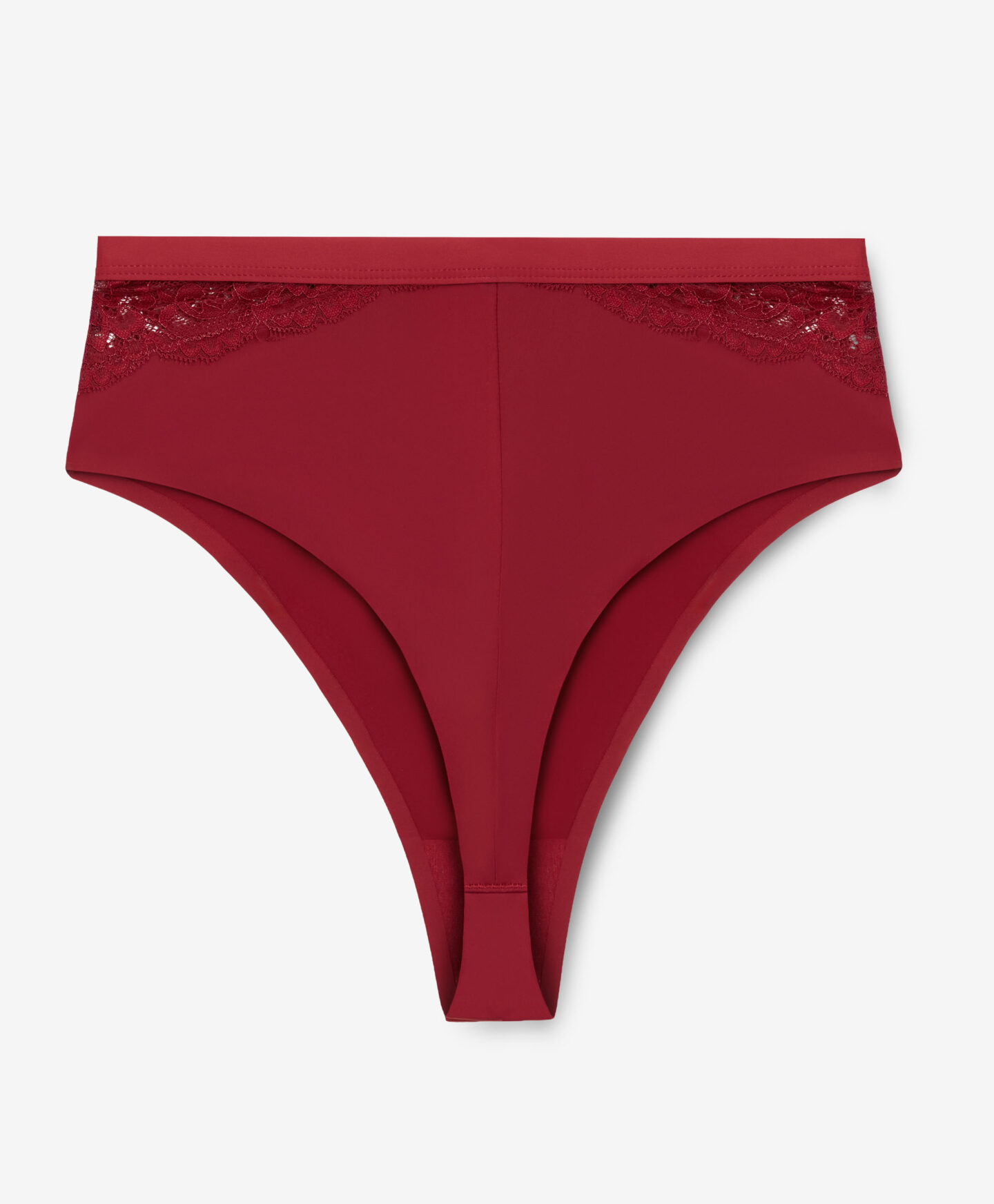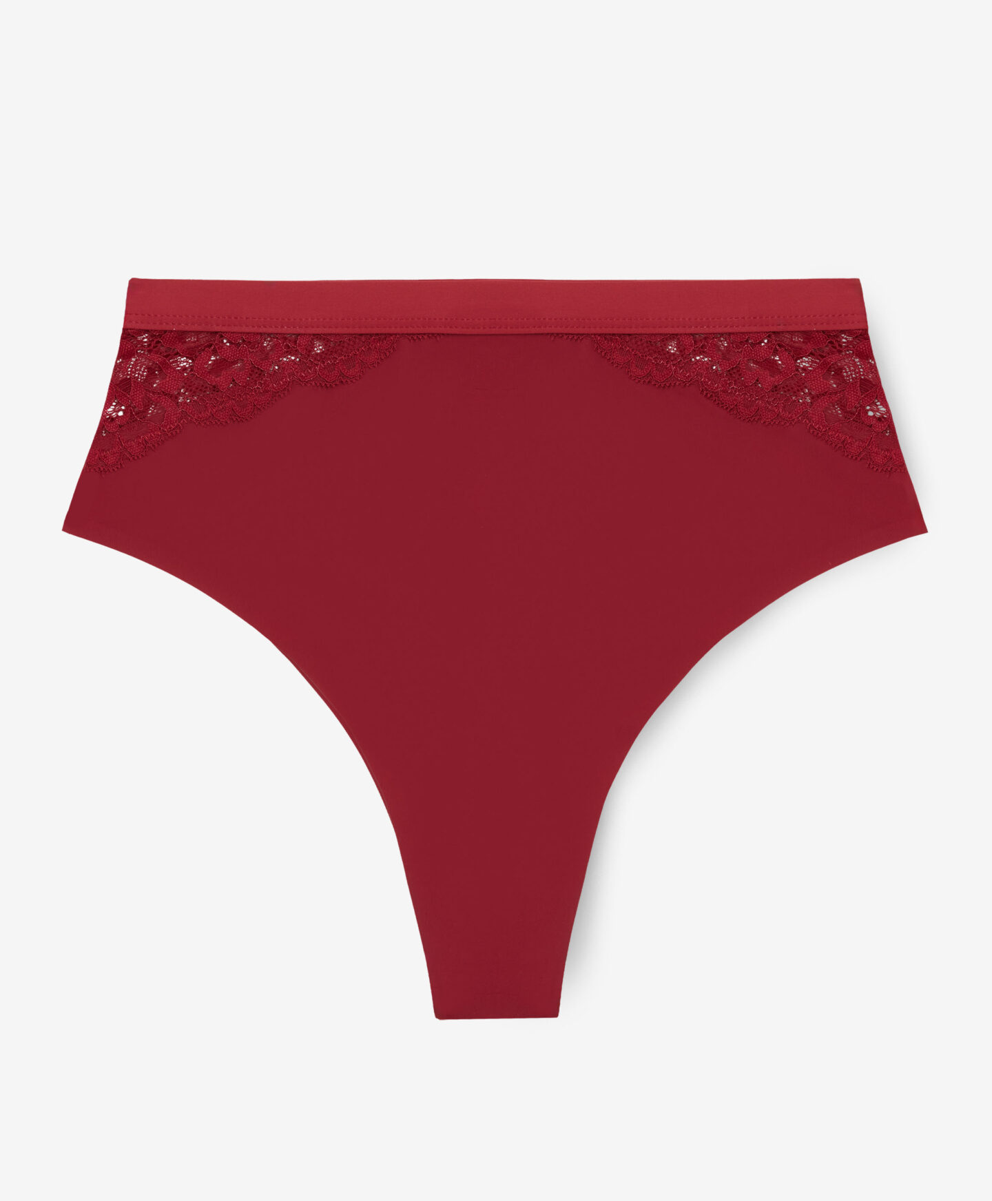 Der bordeauxfarbene String mit Rosenmuster setzt auf ein harmonisches Zusammenspiel von Farbe und Muster.