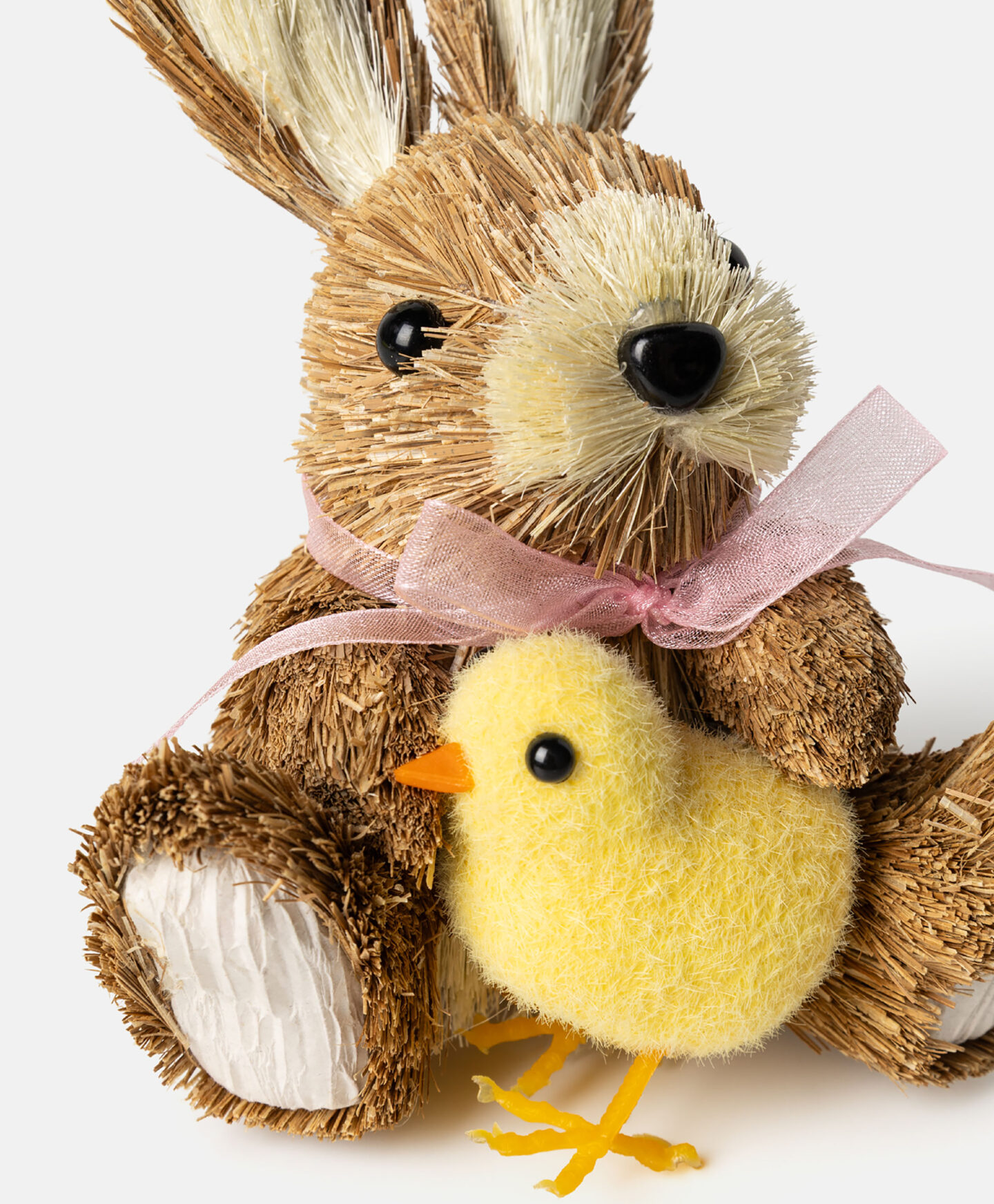 Der Stroh-Hase mit Huhn ist eine dekorative Figur mit natürlichen Elementen.