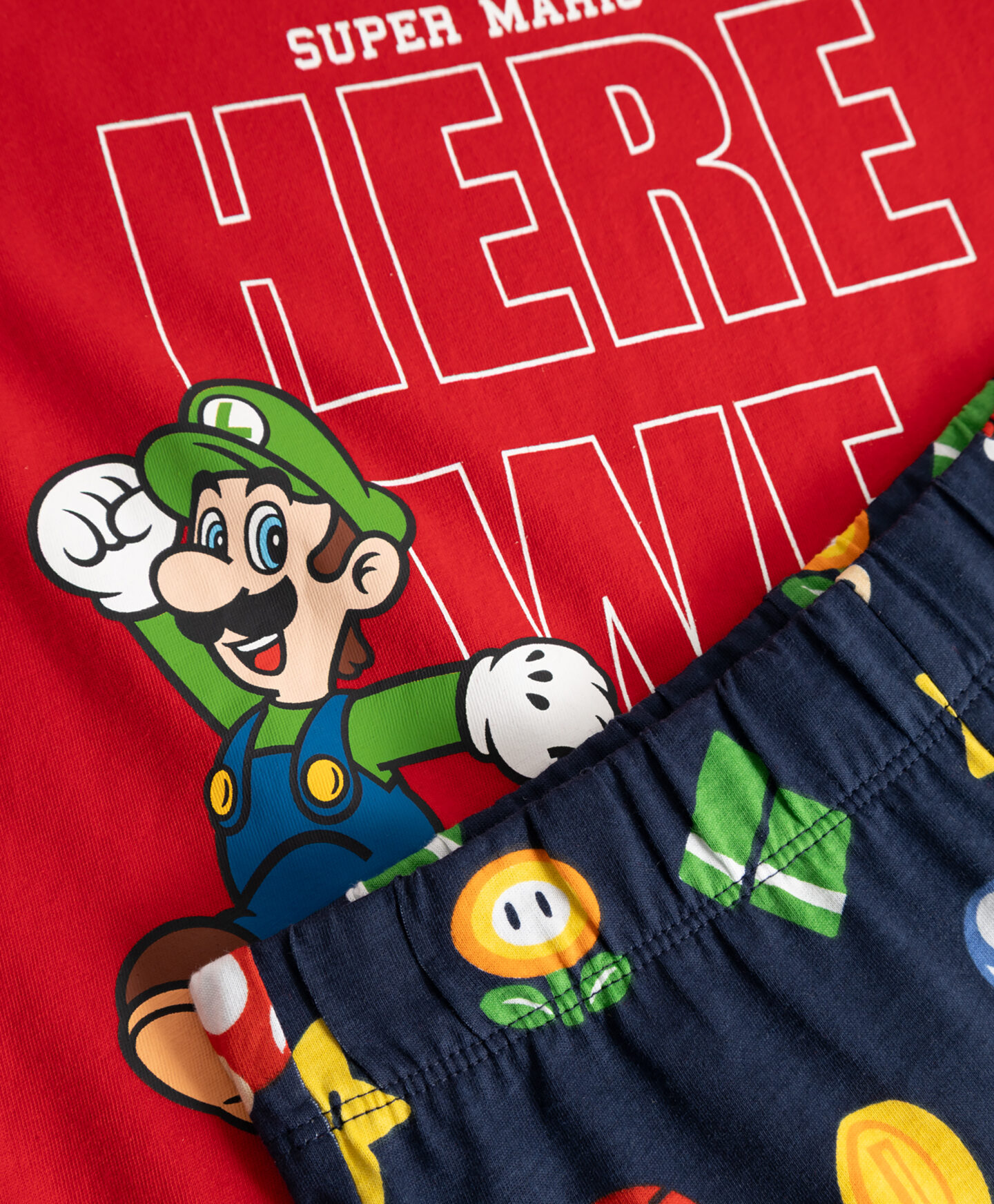 Das Super Mario Pyjama aus 100 % Baumwolle besteht aus einem T-Shirt und Shorts.