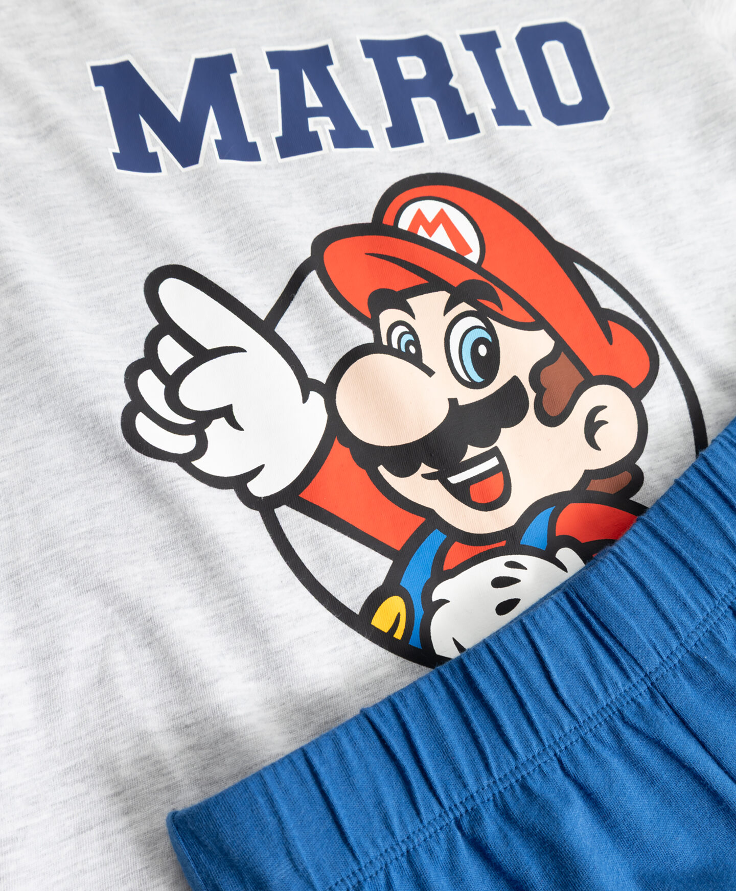 Das Super Mario Pyjama aus 100 % Baumwolle besteht aus einem T-Shirt und Shorts.