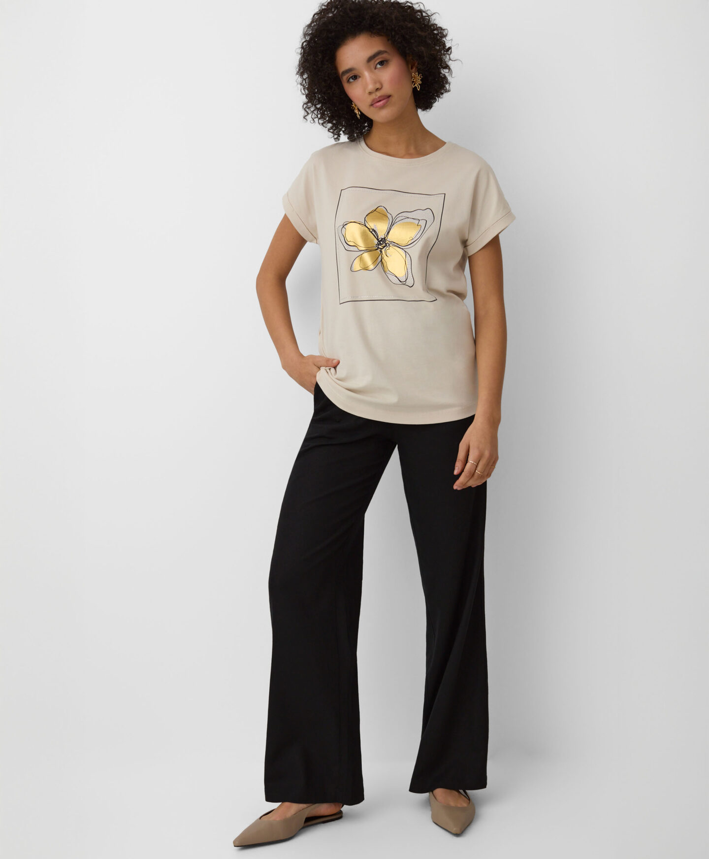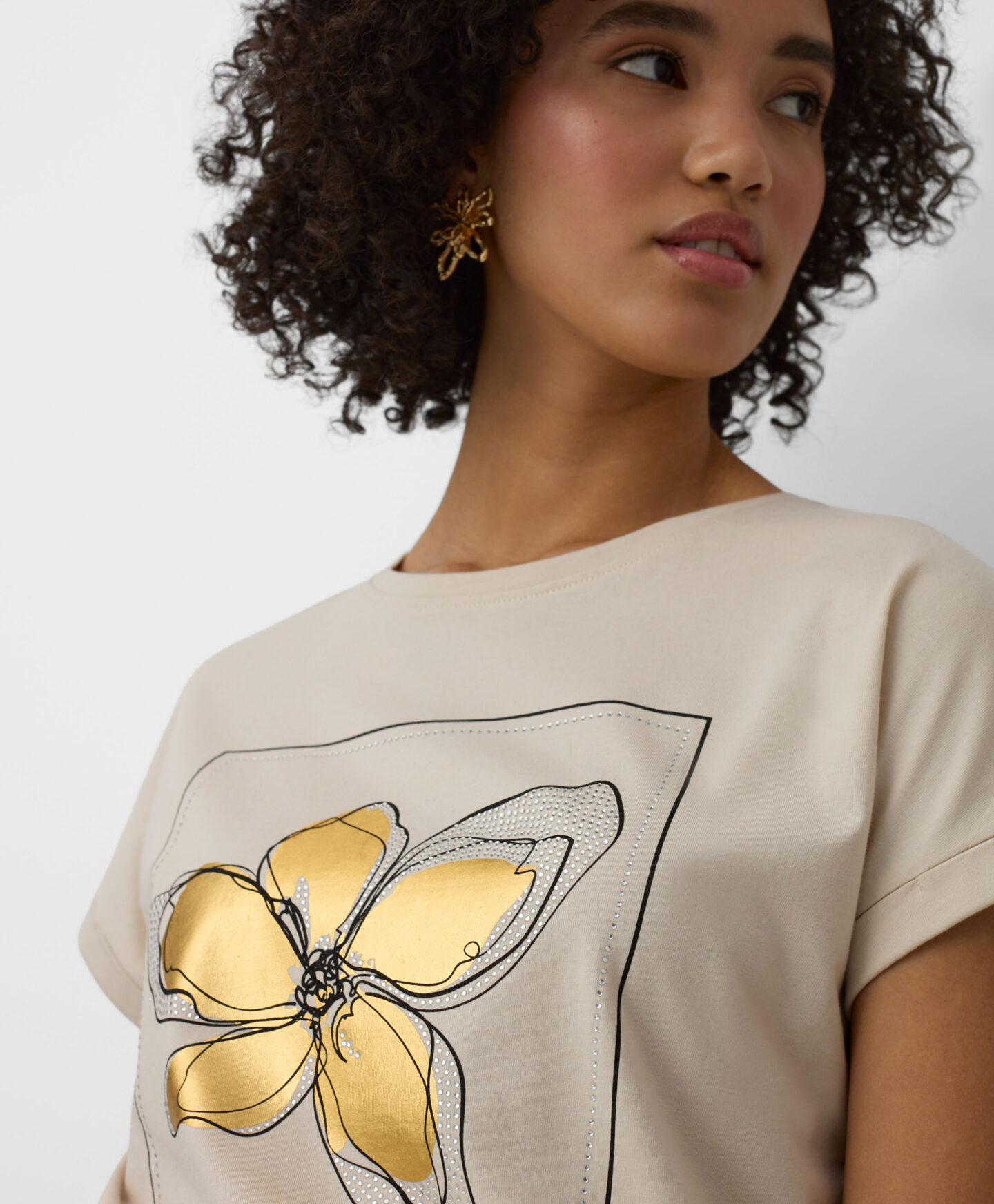 Das T-Shirt aus 100% Baumwolle mit funkelnder Applikation zieht alle Blicke auf sich.