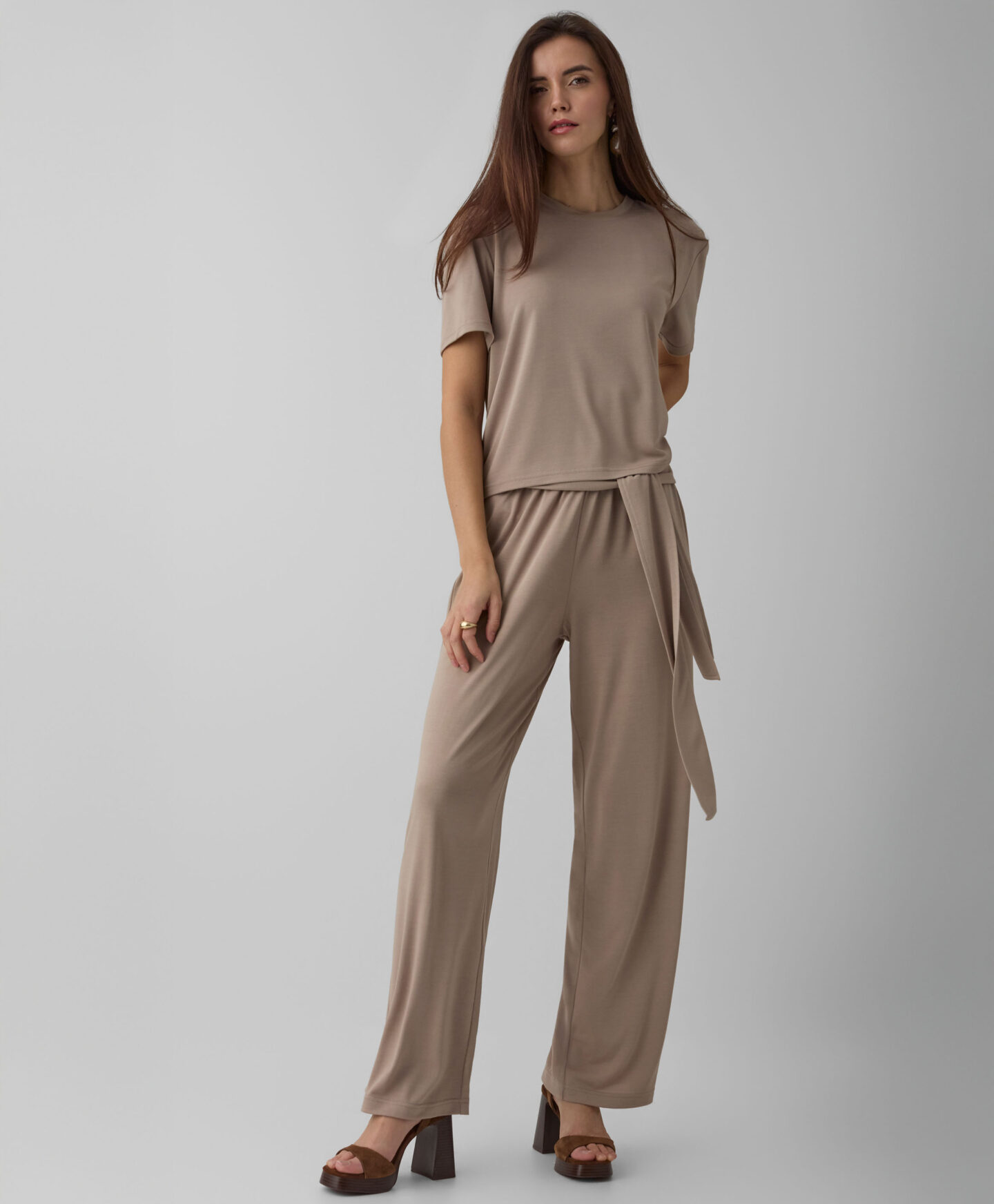 Ein kurzärmliges T-Shirt lässt sich ideal mit einer Hose mit Bindeband kombinieren.