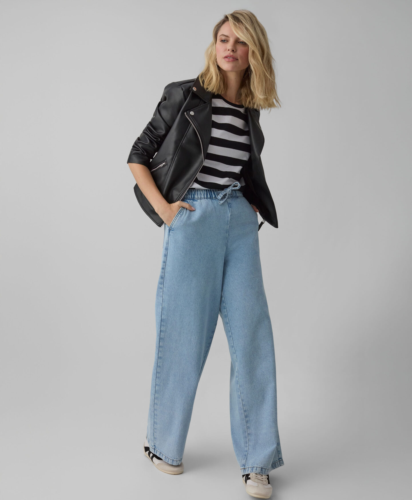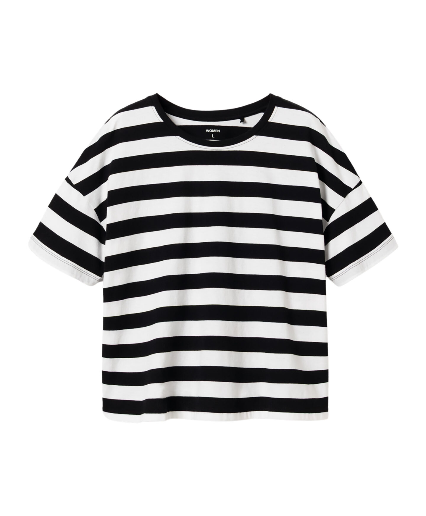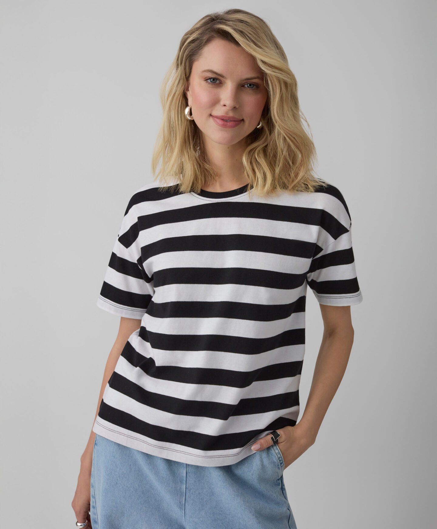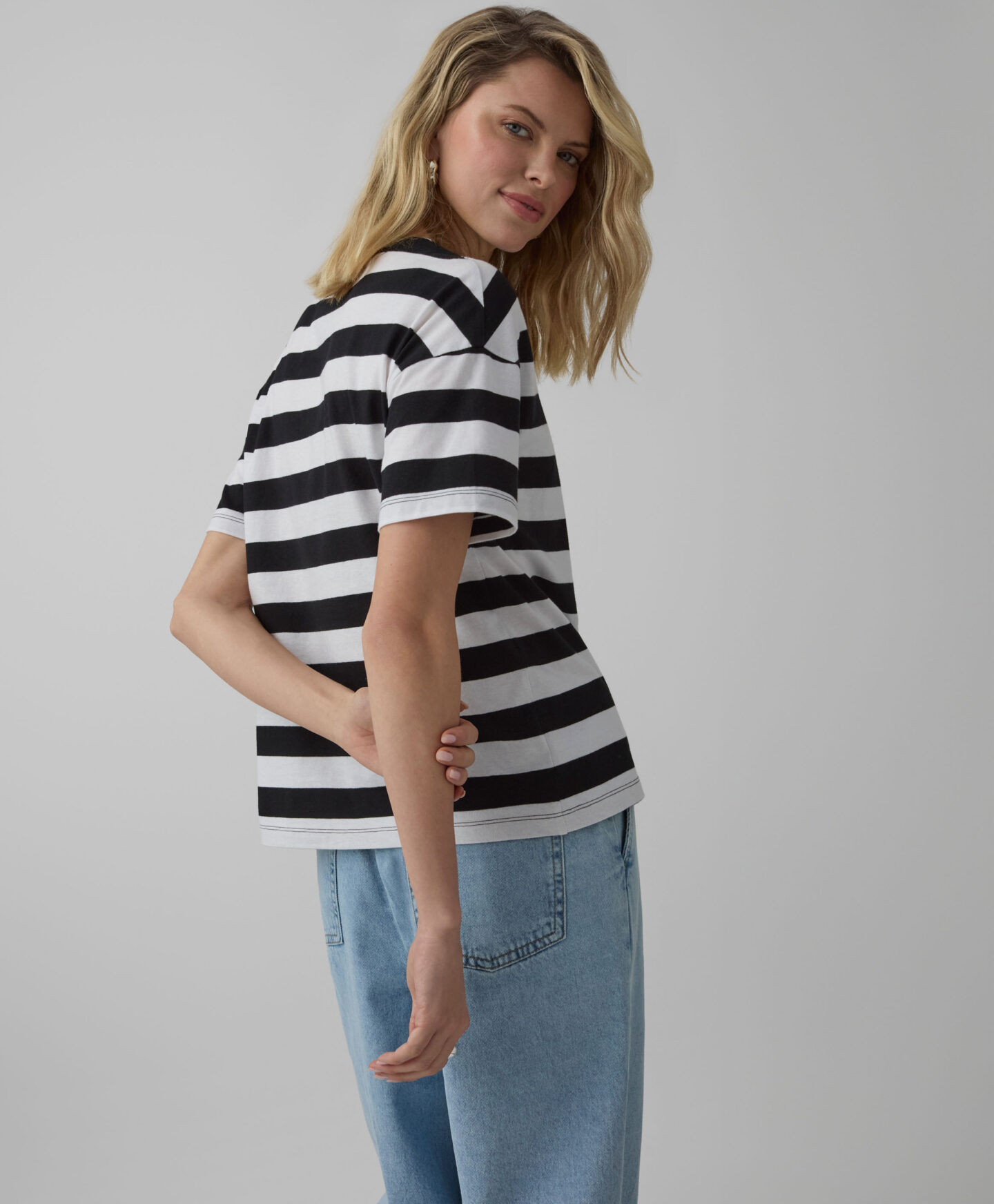 Ein gestreiftes T-Shirt aus 100% Baumwolle verleiht jedem Outfit Charakter.