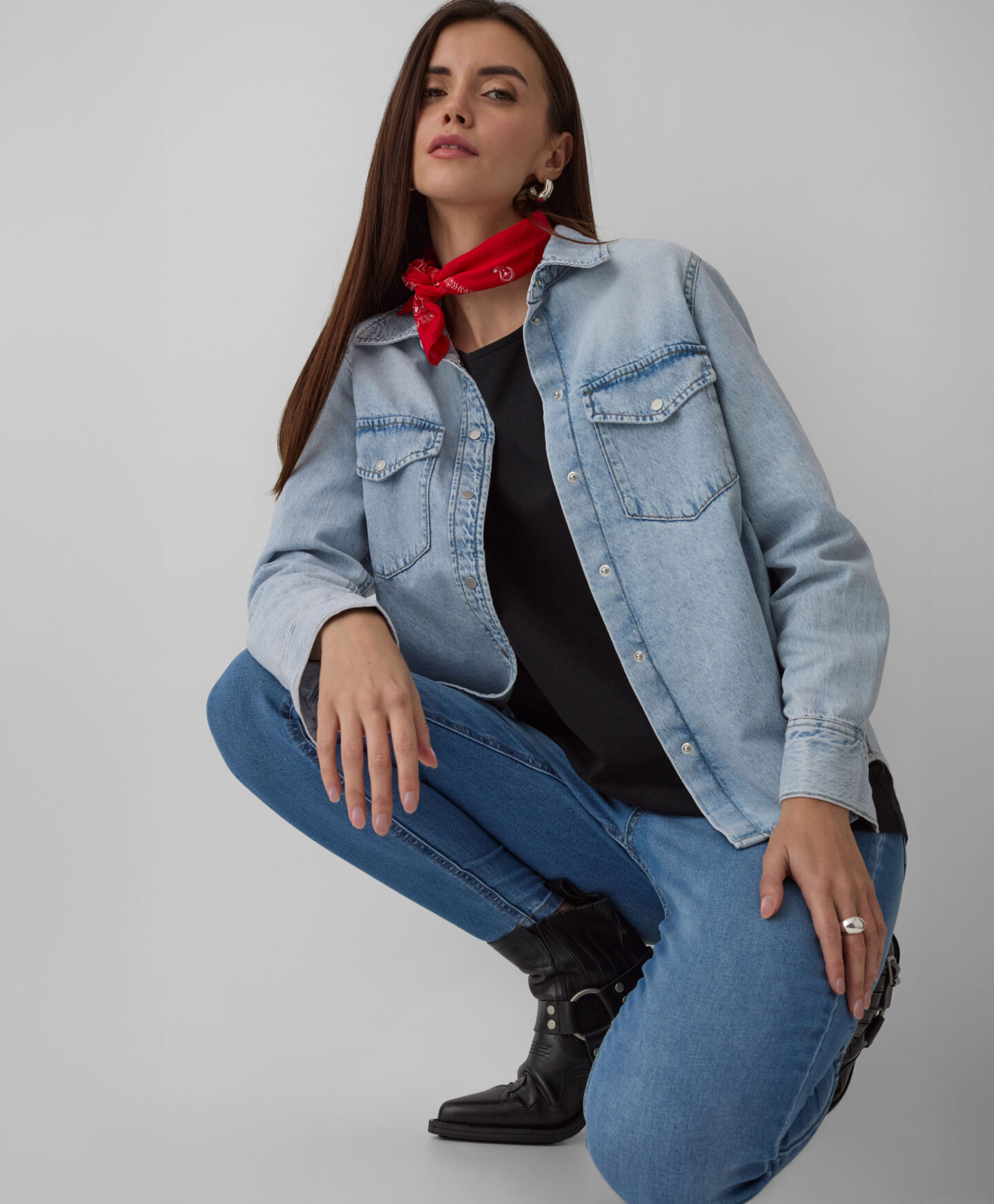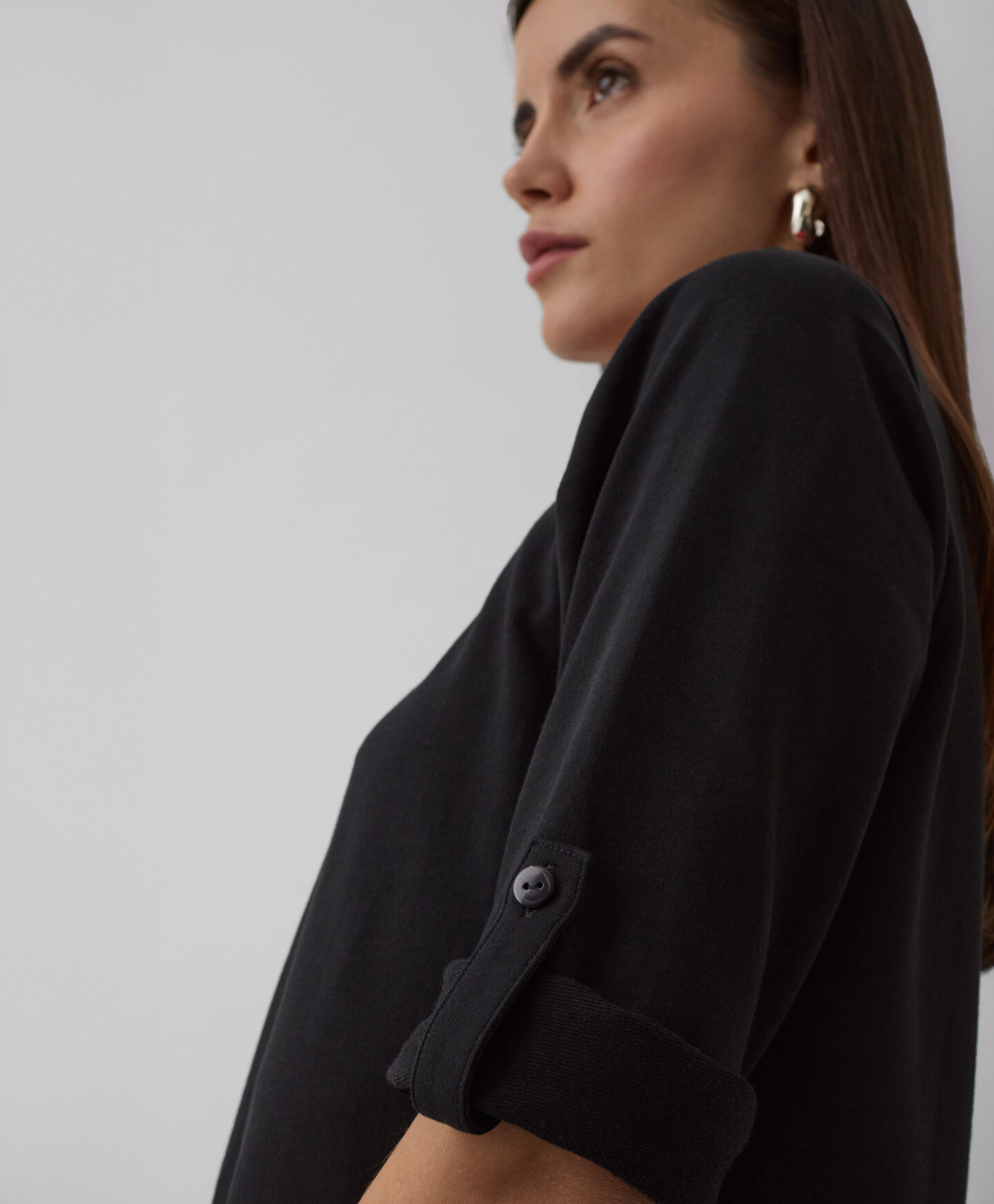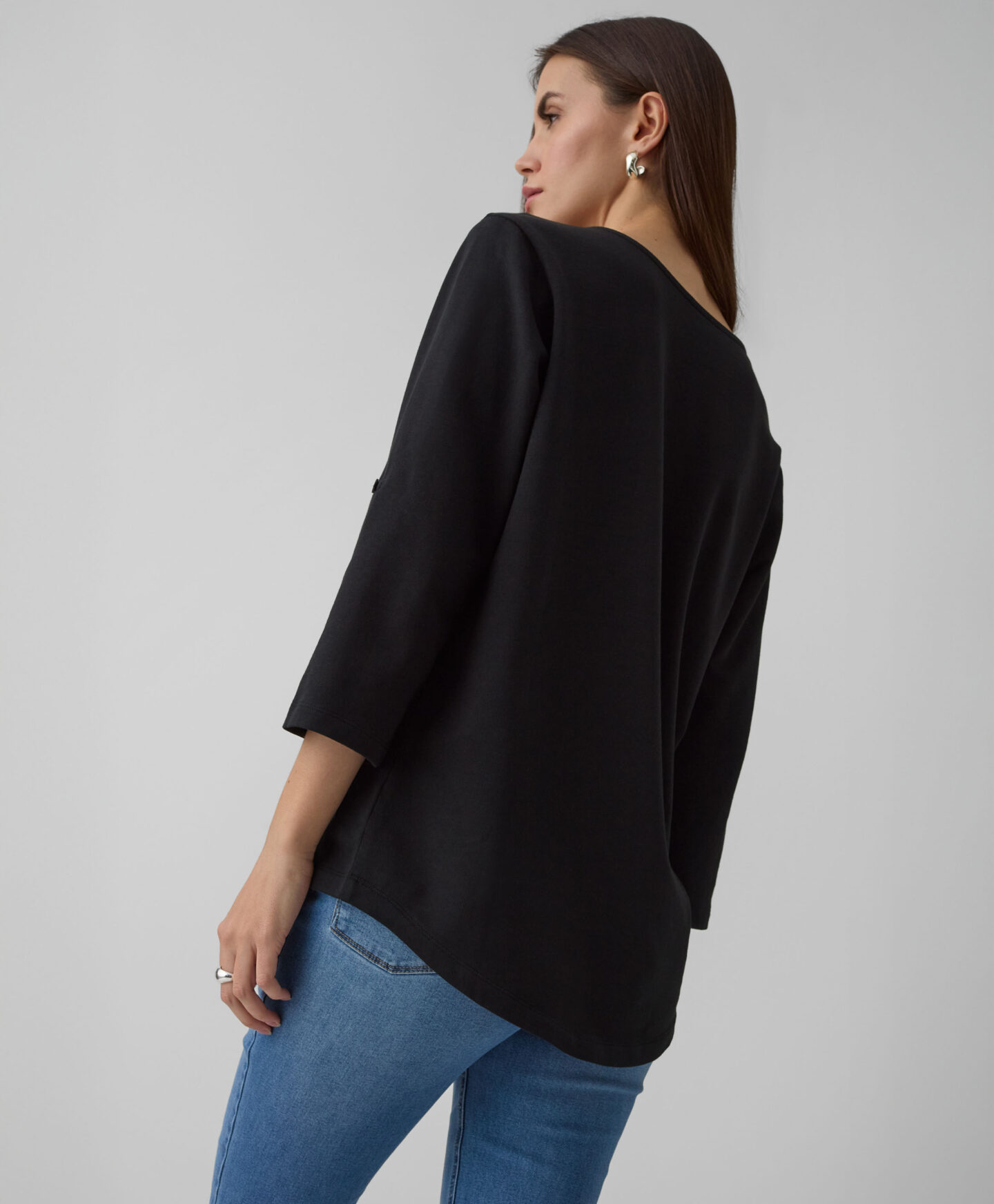 Ein T-Shirt mit abgerundetem Saum und umgeschlagenen Ärmeln ist ein Klassiker mit modernem Twist.