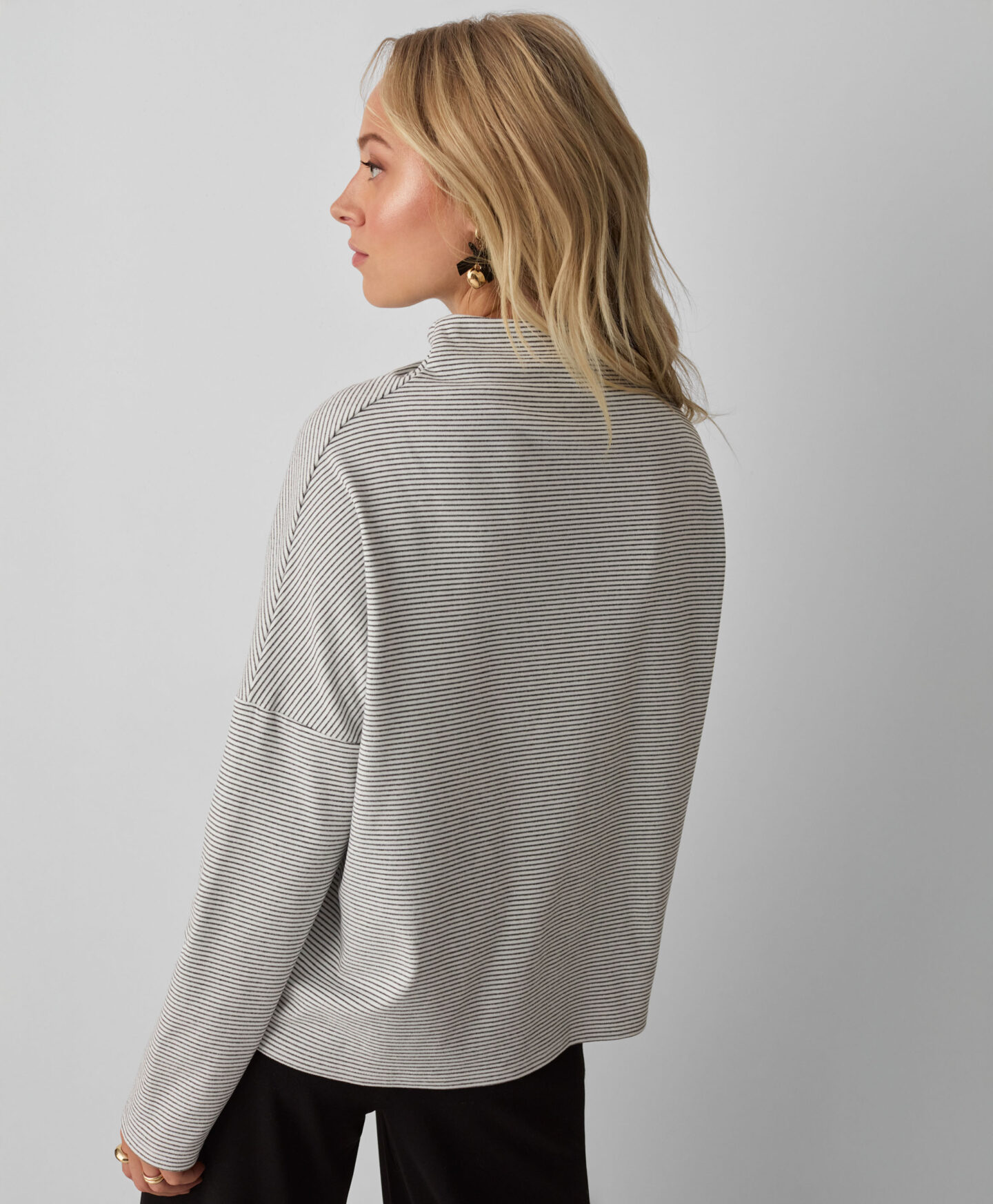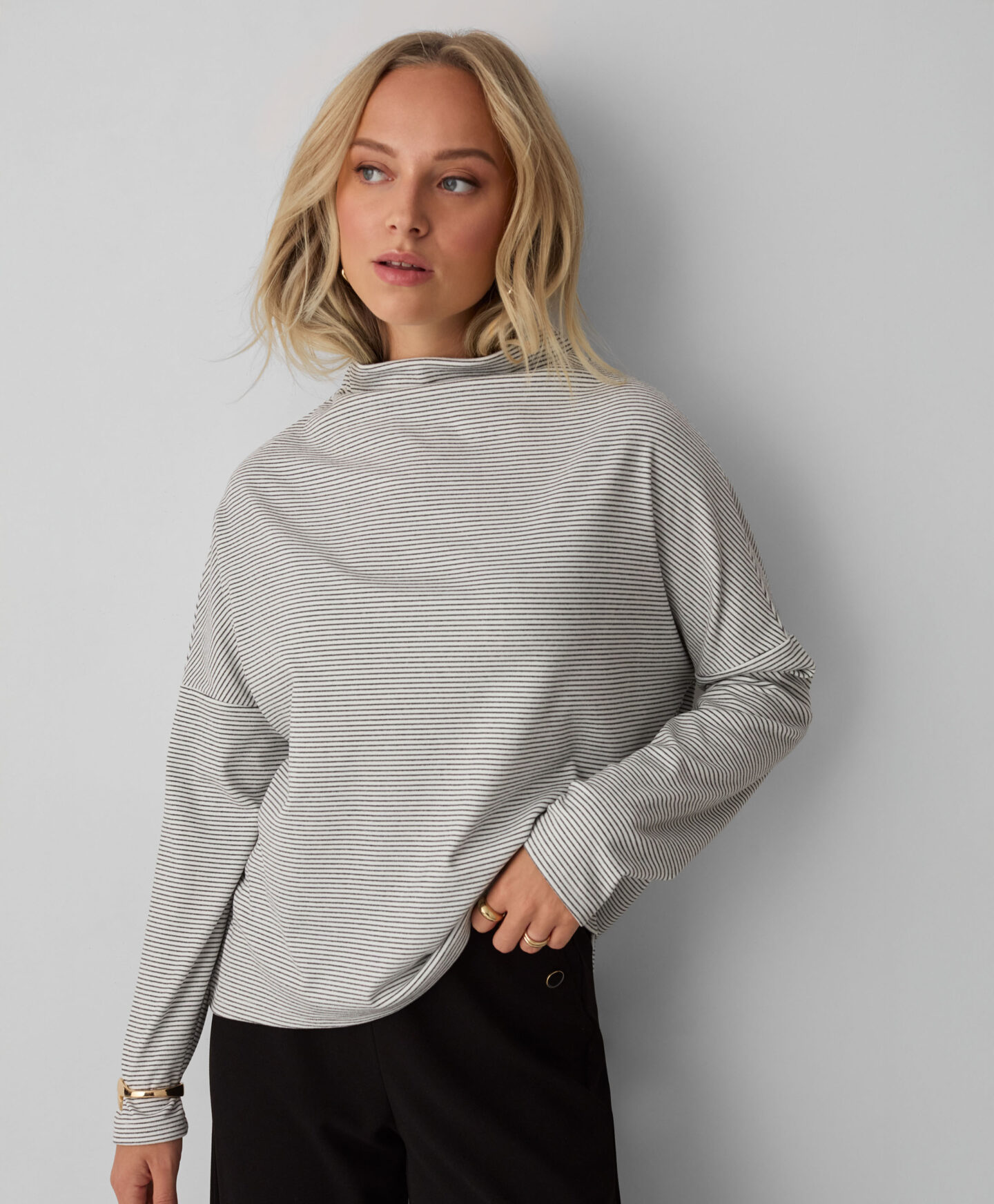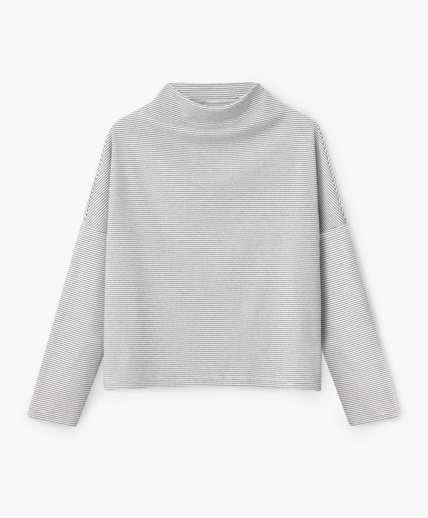 T-Shirt für Damen mit Stehkragen – Sieht besonders gut zu klassischen Jeans aus. Es ist leicht, angenehm im Griff und schmiegt sich sanft an die Haut. Eine ausgezeichnete Wahl sowohl für die Arbeit als auch zum Entspannen zu Hause. Der Stehkragen bietet zusätzliche Wärme und ist ideal für die Herbst-Winter-Saison.