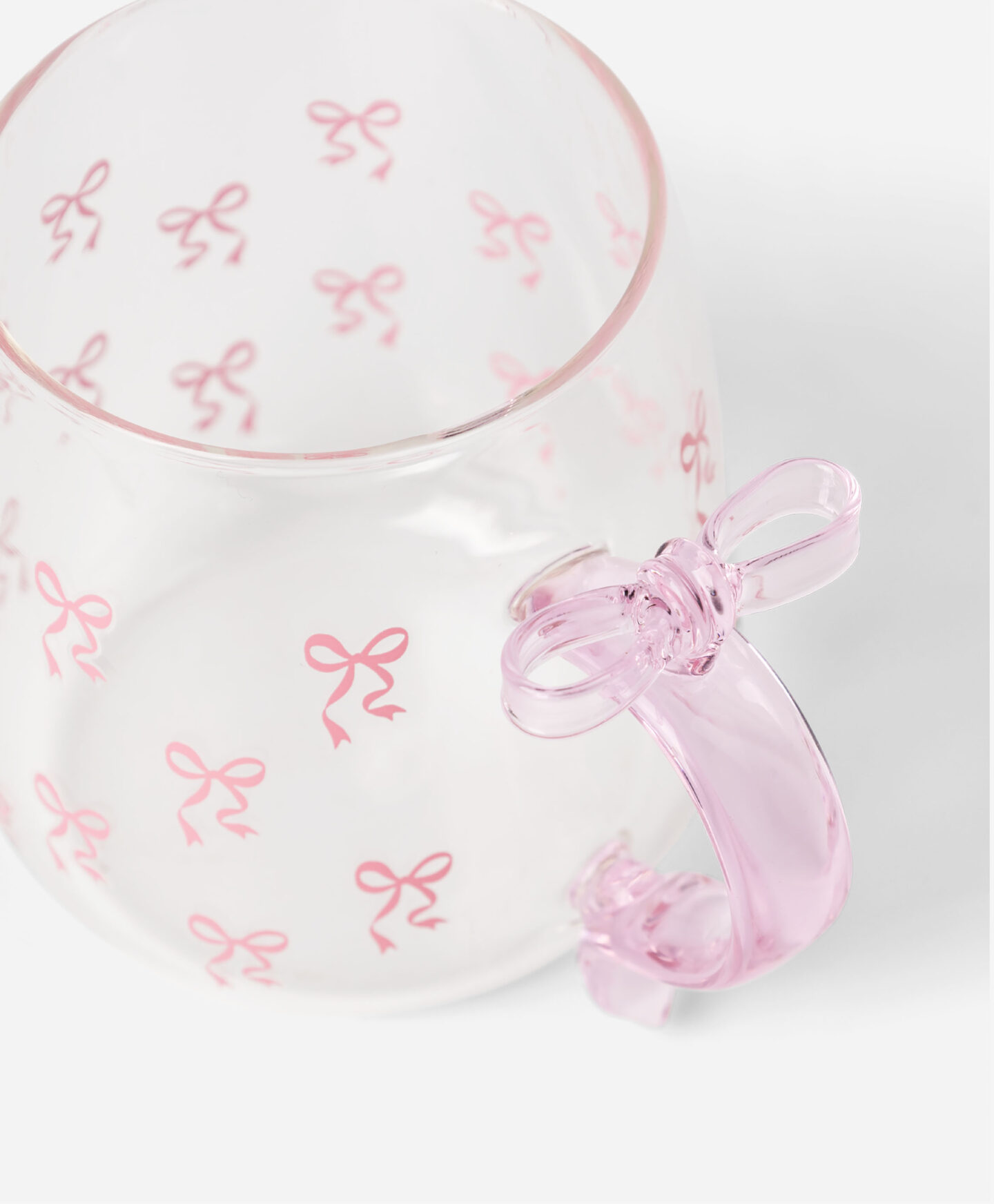 Die Tasse mit Schleifenmuster und besonderem Henkel ist ein auffälliges Element im Geschirrsortiment.