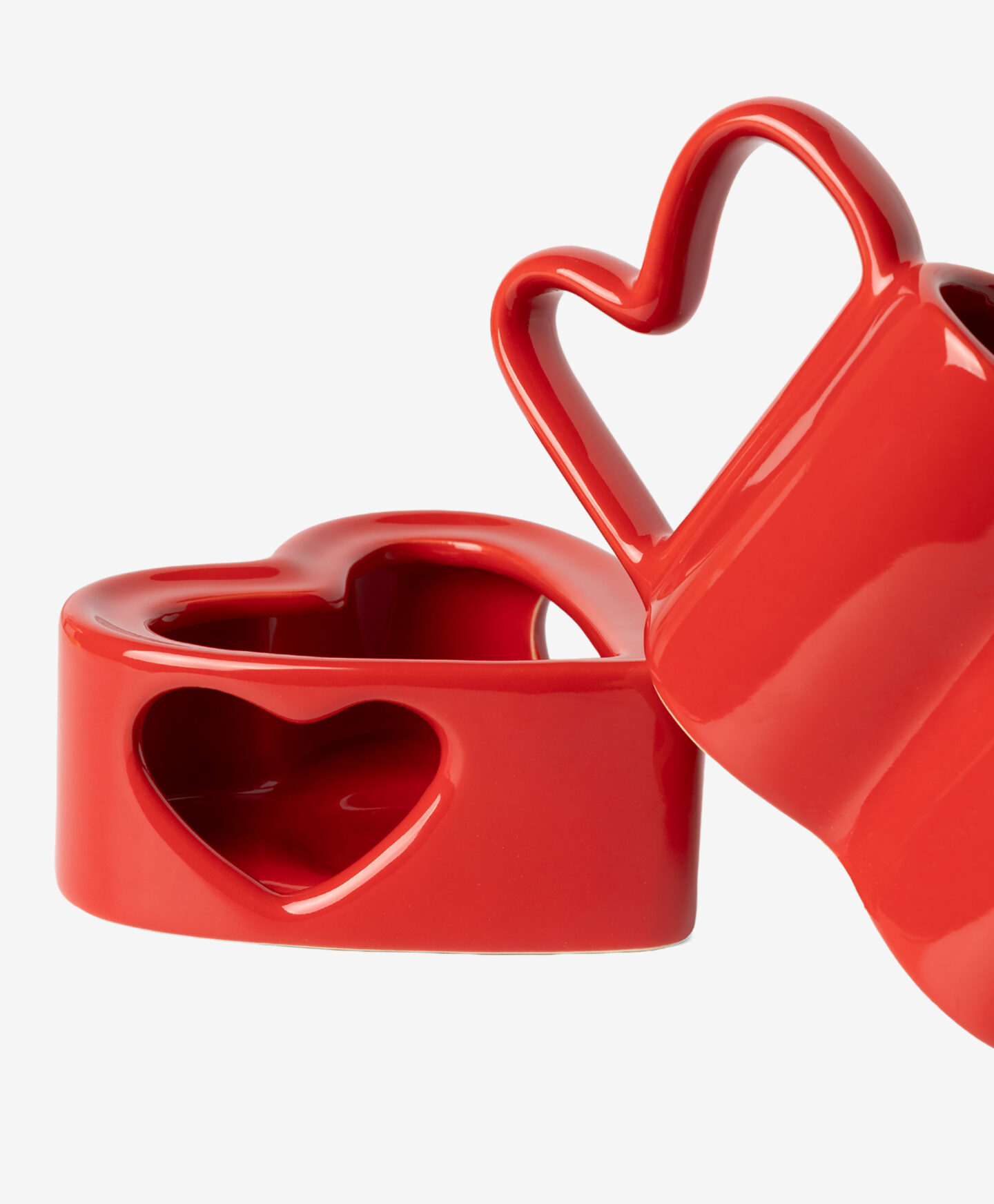 Die Tasse mit Wärmer hält Getränke länger warm.