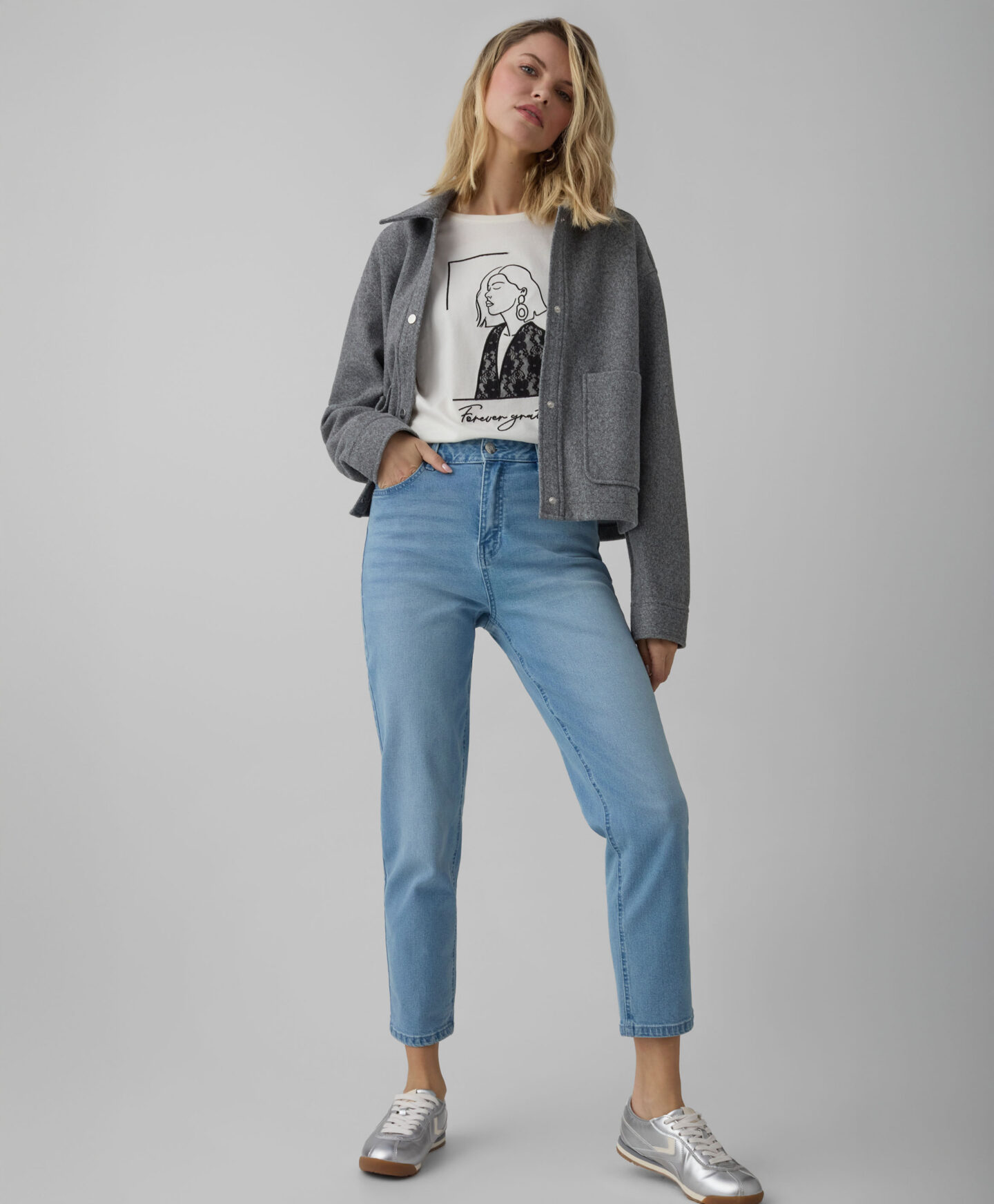Eine Übergangsjacke mit Knopfverschluss schützt zuverlässig vor Kälte und Wind.