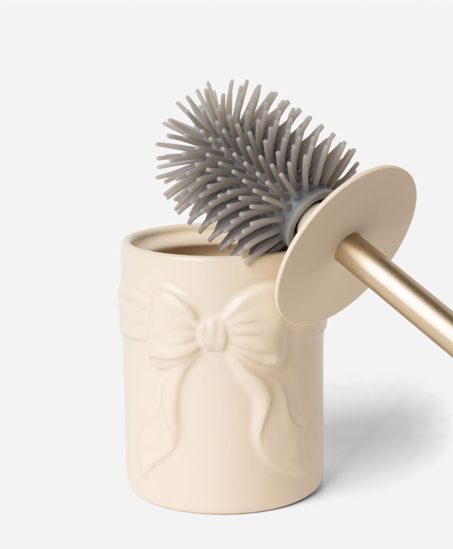 Die WC-Bürste mit Schleife ergänzt das Badset auf harmonische Weise.